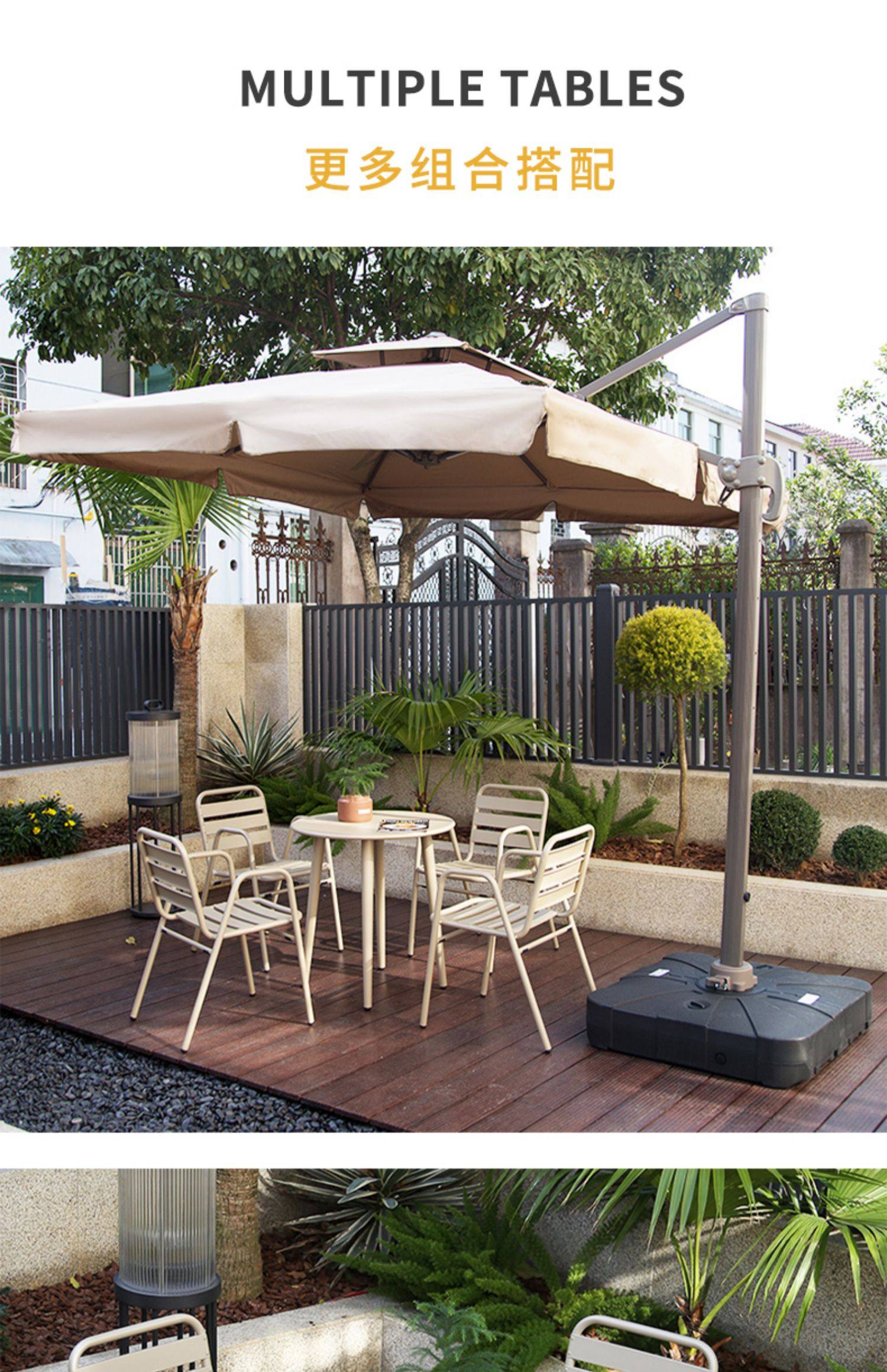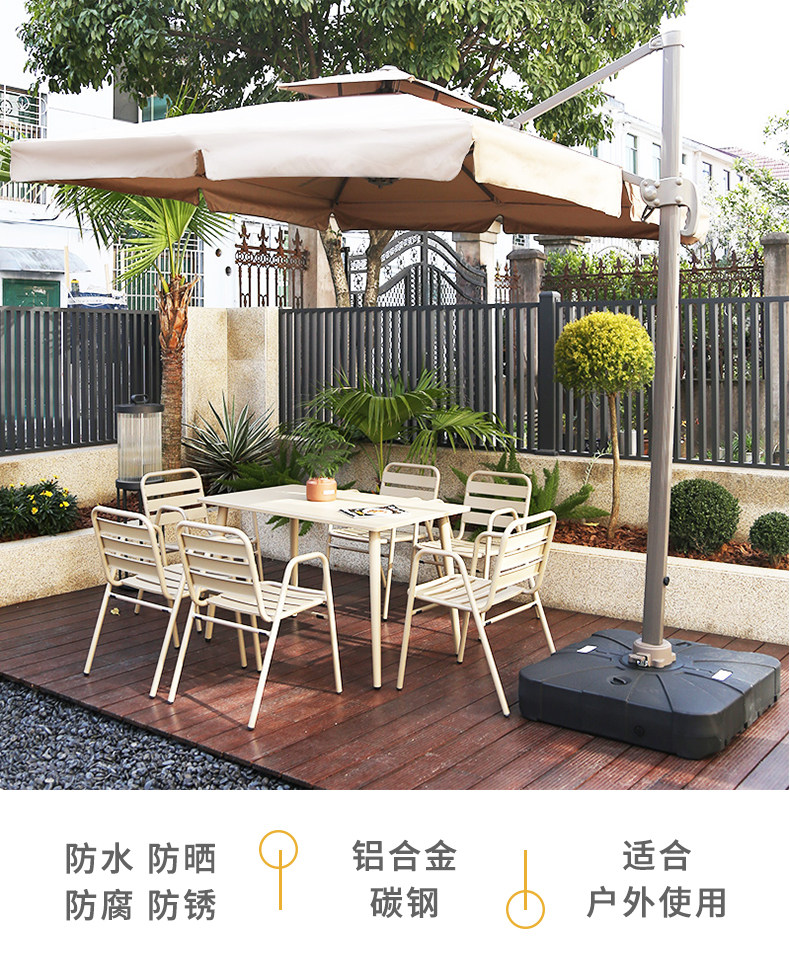 6 (aluminum chair) +1 (carbon steel long table 150*80cm)+2.5 m roman umbrella