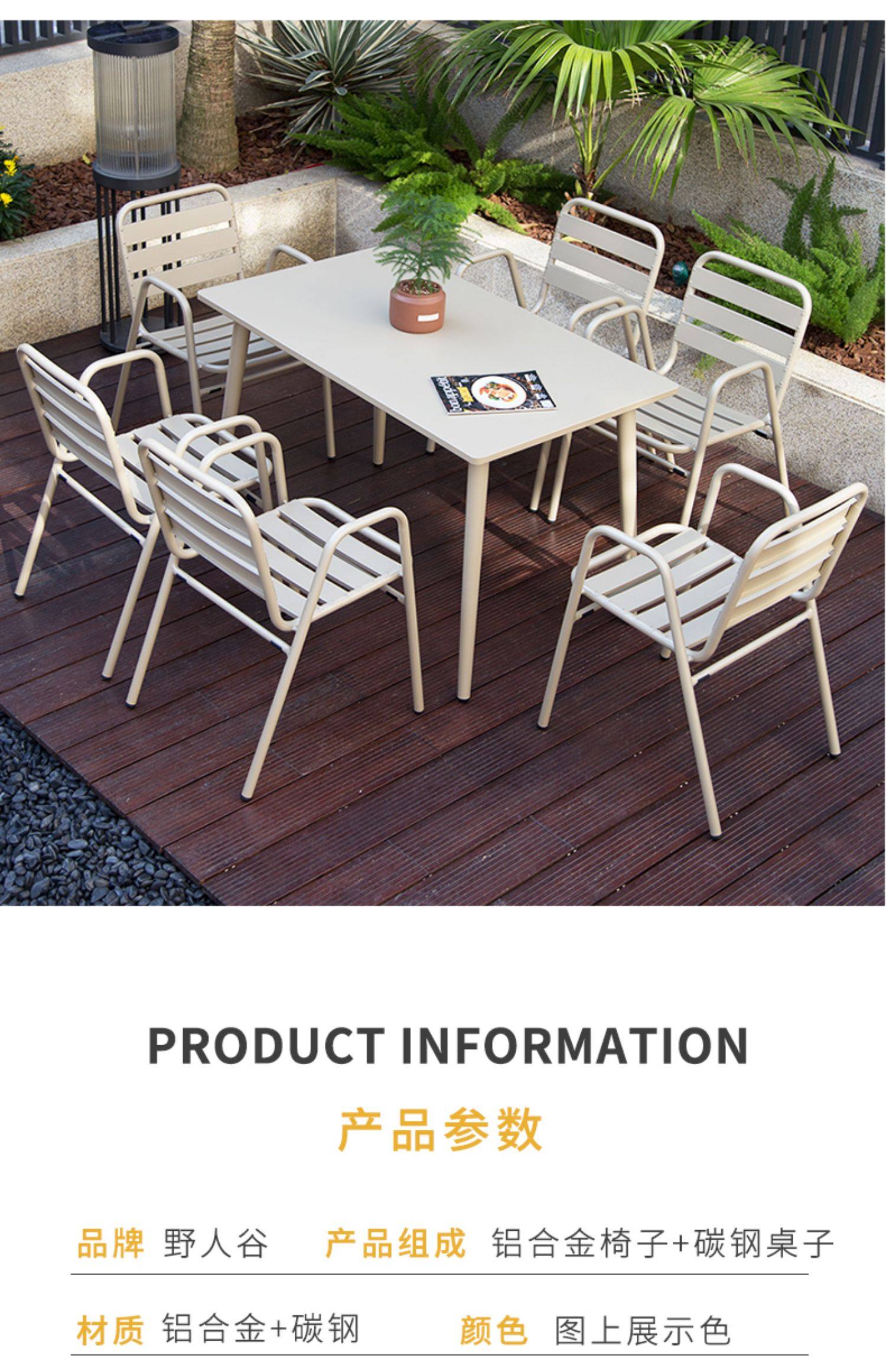 6 (aluminum chair) +1 (carbon steel long table 150 * 80cm)