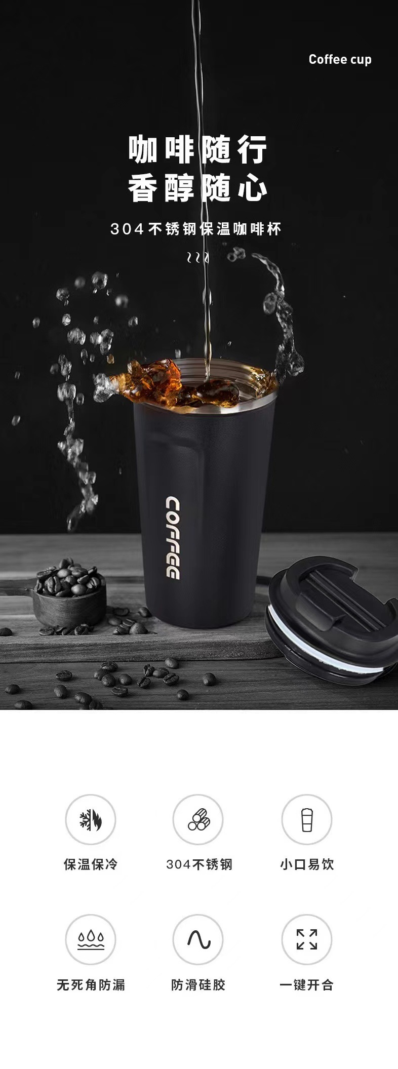 Foreign Trade 304 Stainless Steel Coffee Cup Tumbler Office Portable Heat and Cold Insulation Coffee Cup Gift Cup Wholesale