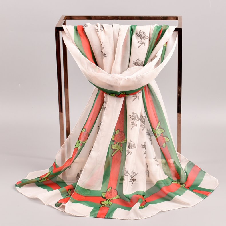Spring New Rose Chiffon Printing Long Scarves Wholesale Yiwu Ladies Small Gauze Kerchief 38 Th Festival Gift