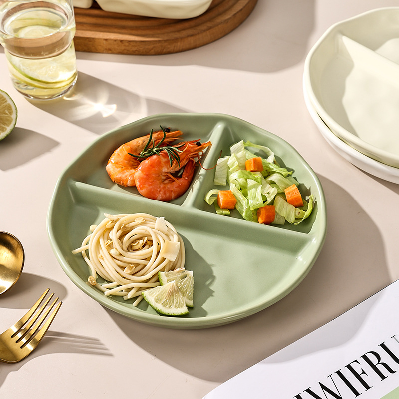 ceramic divided plate separated plate fat-reducing quantitative plate for one person divided tableware
