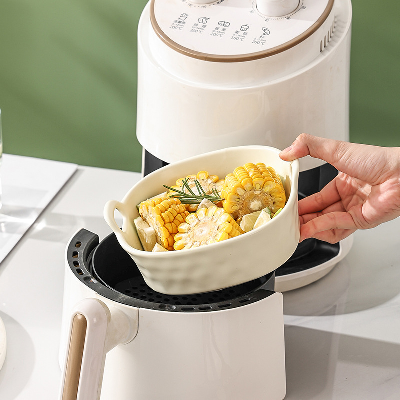 air fryer dedicated bowl high temperature resistant ceramic binaural baking bowl oven baking tray fruit salad bowl