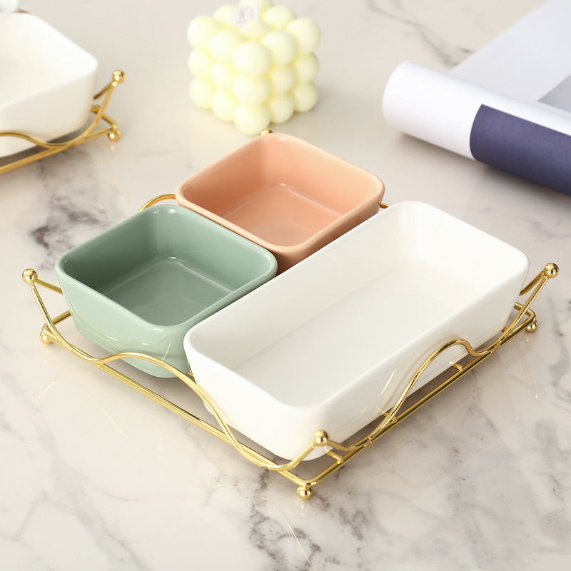 ceramic grid snack plate snack plate candy flat ware nordic fruit dried fruit nuts tea cake tray