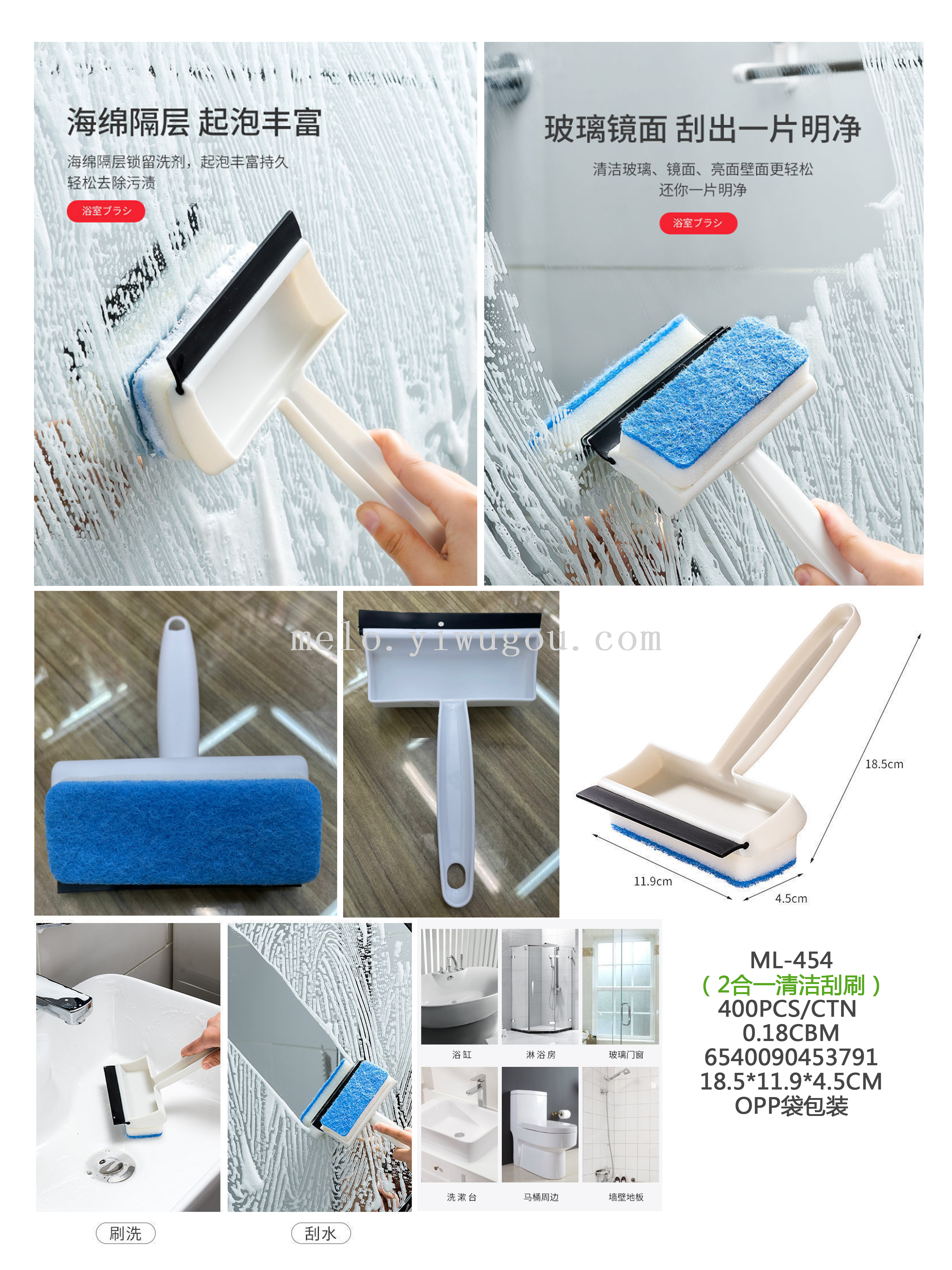 Multifunctional 2-in-1 Cleaning Blade Brush, Window Glass Wiper, Wall Tile Cleaning Brush 654