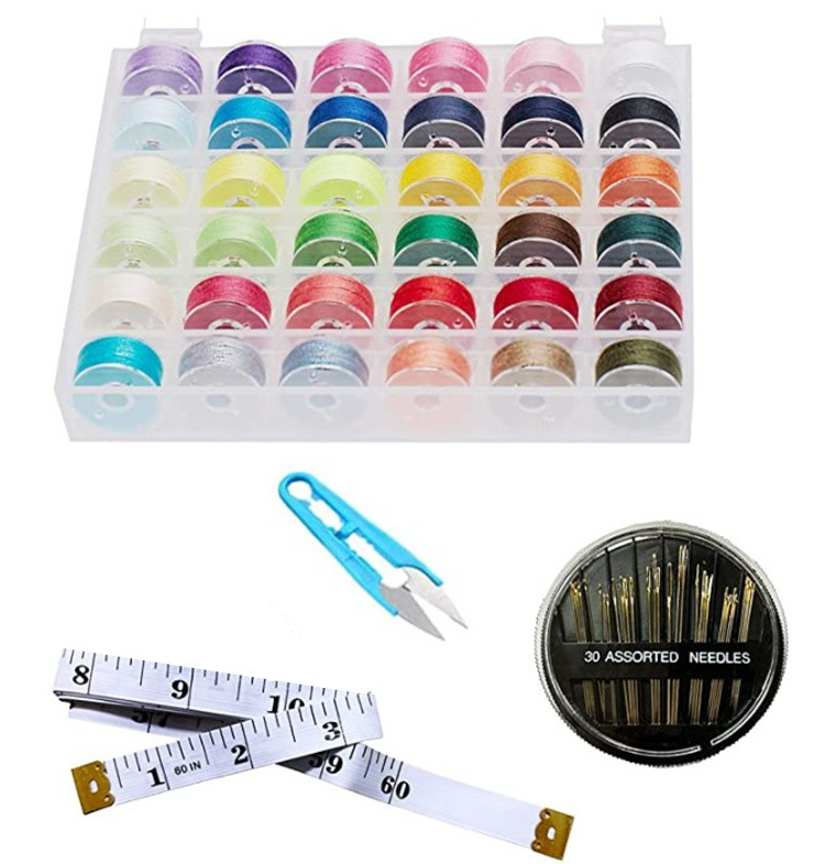 36-color bobbin string boxed + plastic scissors + needle + measuring tape, package size xxcm, weight 219g
