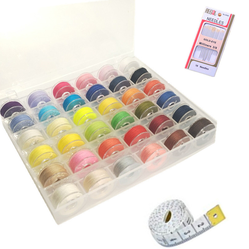 36 grid color bobbin thread + sewing needle + English measuring tape + scissors 198g