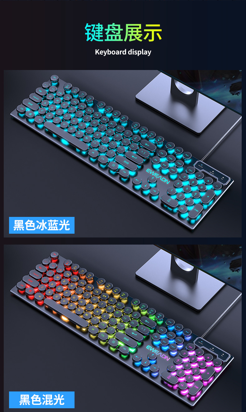 white ice blue light keyboard + wired e-sports mouse