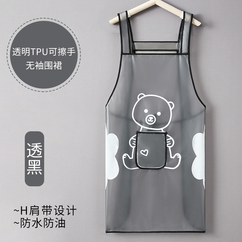 black-tpu erasable hand bear waterproof apron with pocket