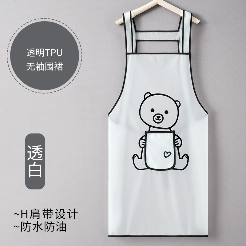 white-tpu erasable hand bear waterproof apron with pocket