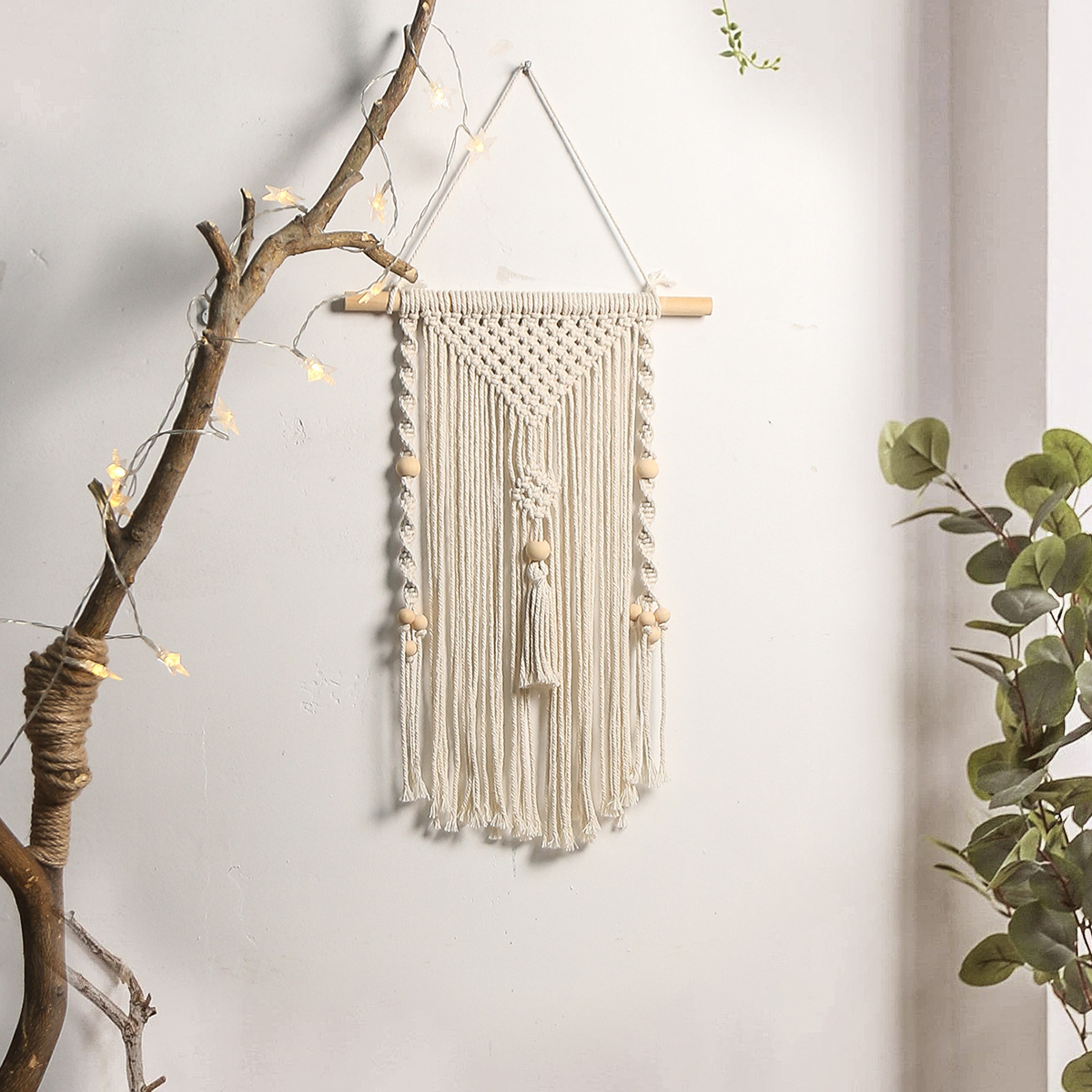 nordic hand-woven wooden bead tassel v-shaped tapestry bohemian style