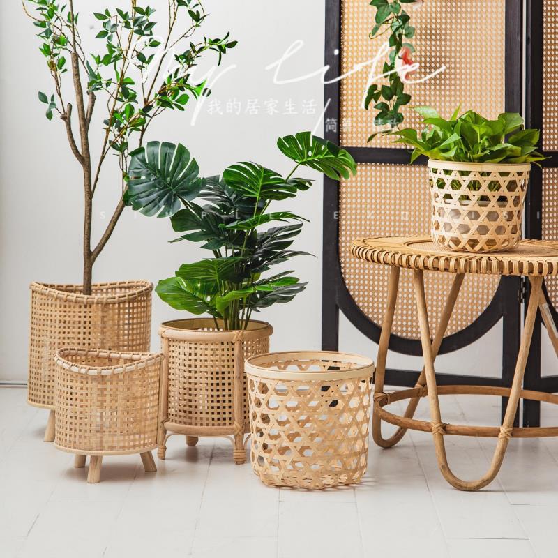 nordic rattan basket flower pot flower rack woven plant storage flower stand