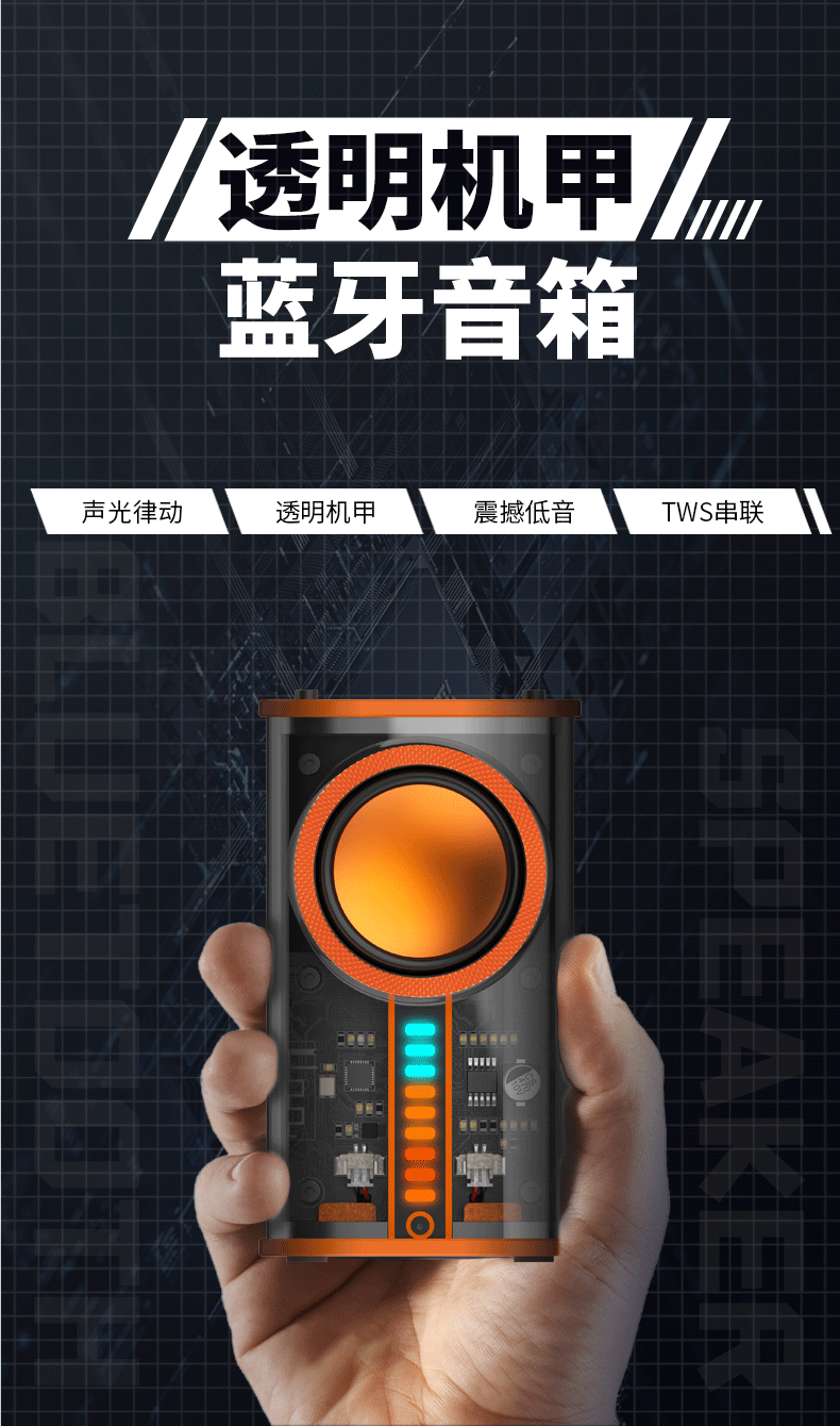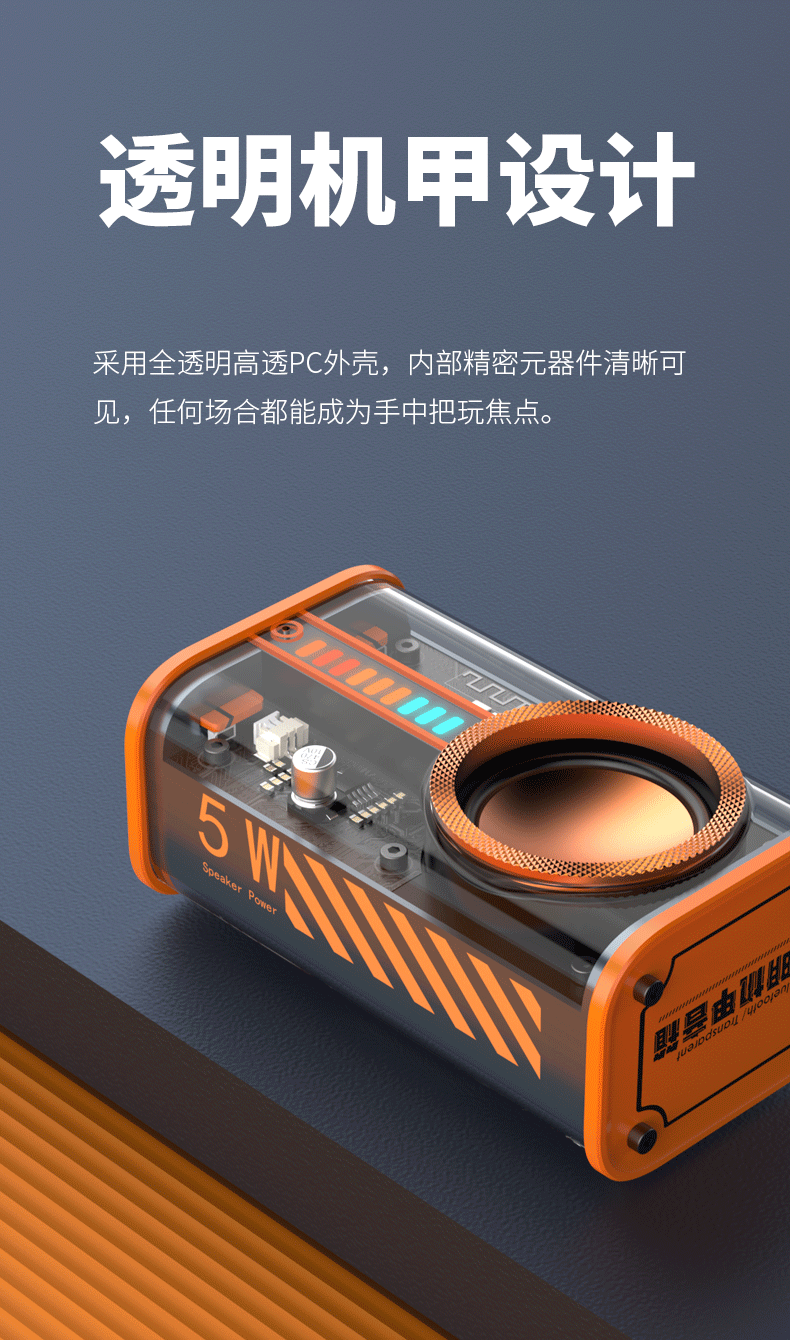 Transparent Mecha Retro Audio Study Decoration Home Subwoofer Lock and Load Spray Mini Outdoor Portable Speaker