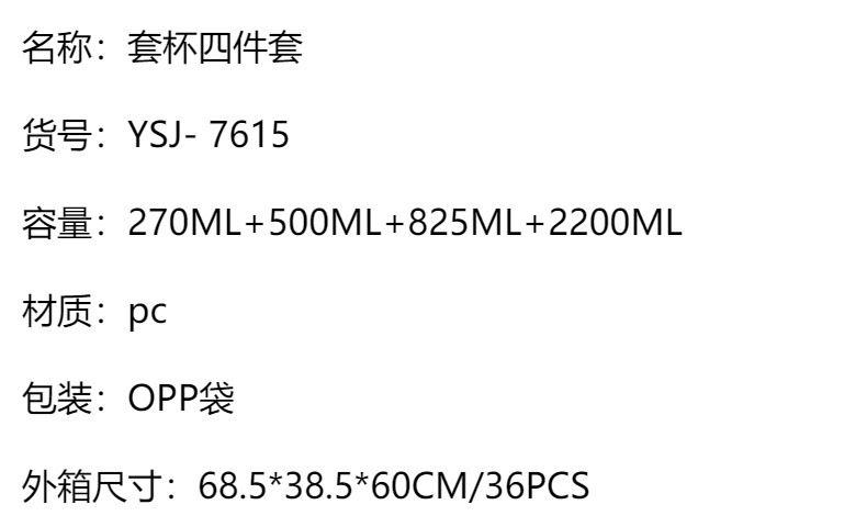 • Item No. : 四件套大容量塑料杯