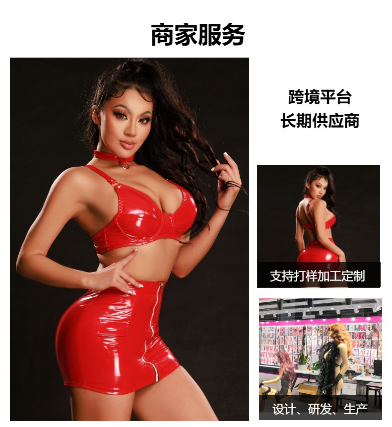 European and American Sexy Patent Leather Sexy Lingerie Red Hip Covered Short Skirt Nightclub Bar Stage Costume 8126