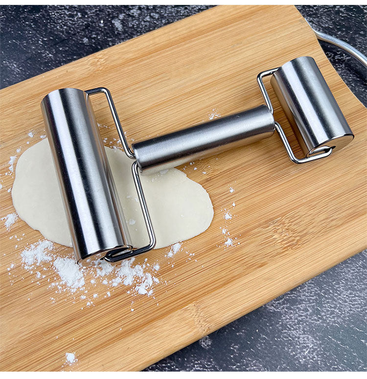 Double-Headed Leather Pressing Artifact Solid Wood Labor-Saving Stainless Steel Making Dumpling Wrapper Steamed Buns Wrapper Single-Hand Rolling Pin Roller Roller