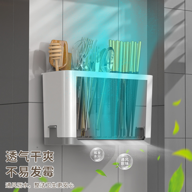 chopsticks storage box wall-mounted kitchen tableware draining rack chopsticks holder household spoon chopsticks cage 0588