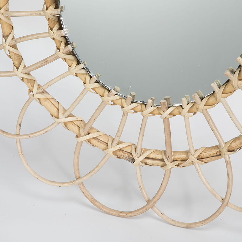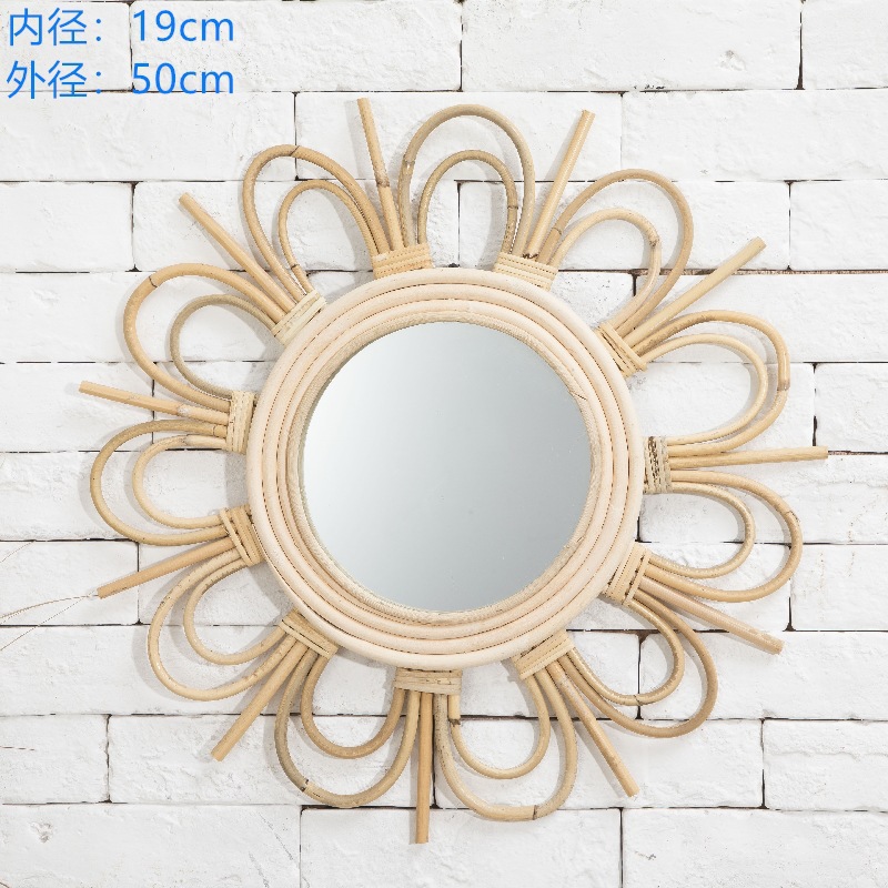 nordic wall decorative mirror retro round ins style rattan mirror handmade hanging mirror