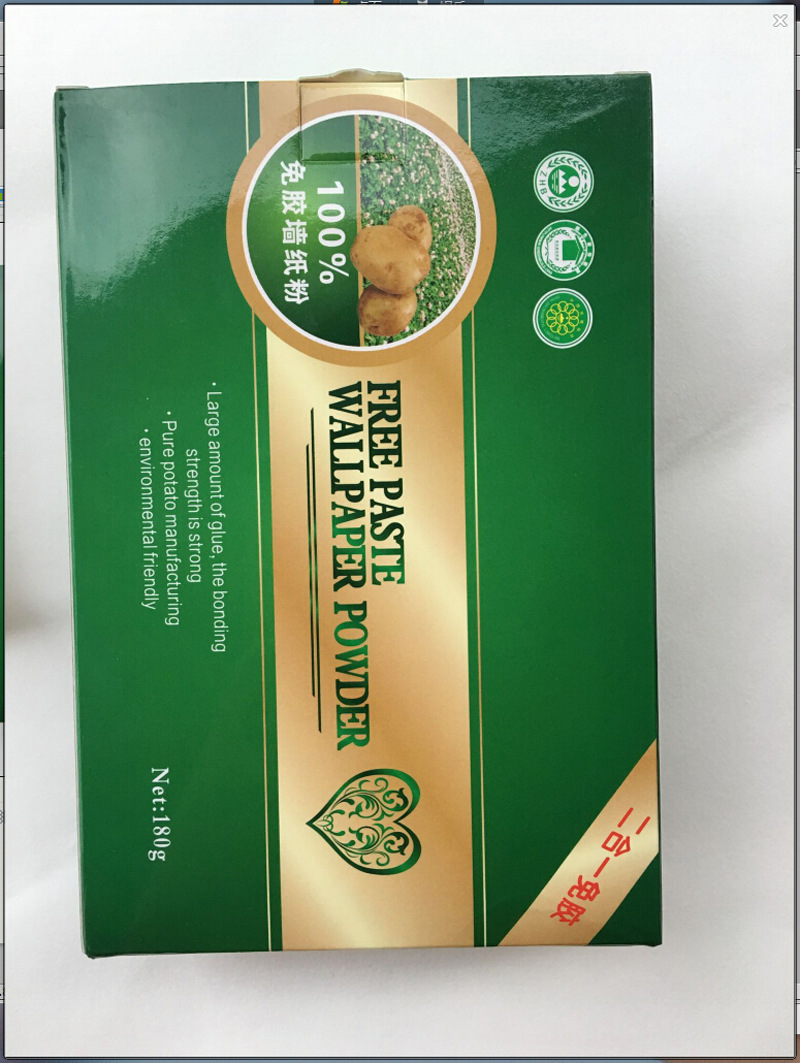 This product isTwo-in-one adhesive-free powder Does not need to be used with glue paste, one box equals two boxes.A box can stick 4 rolls of wallpaper. Real savings, real environmental protection