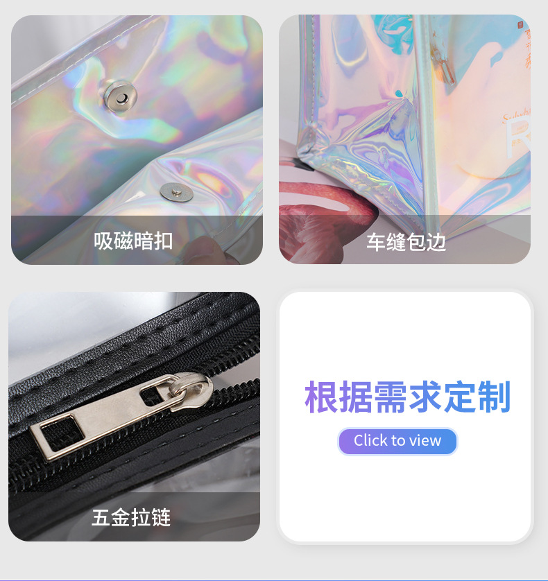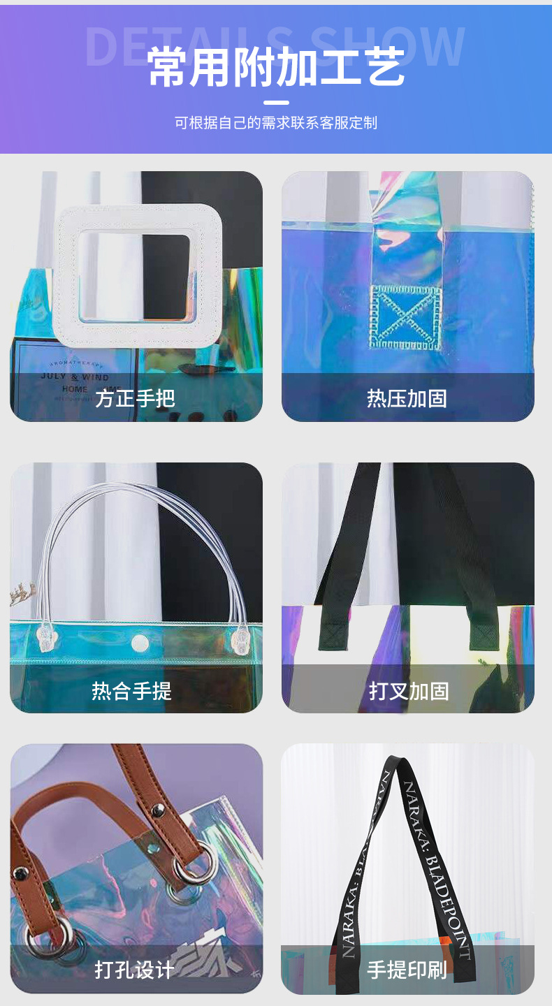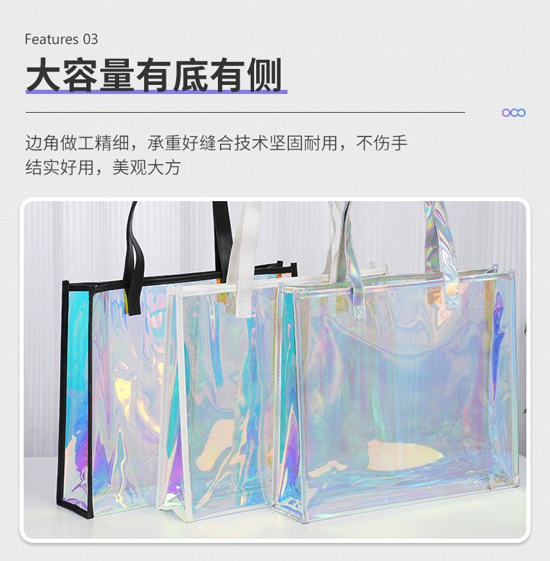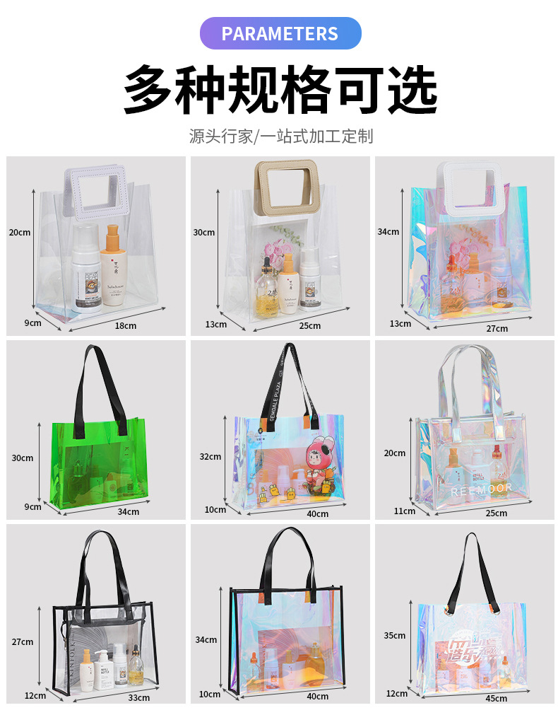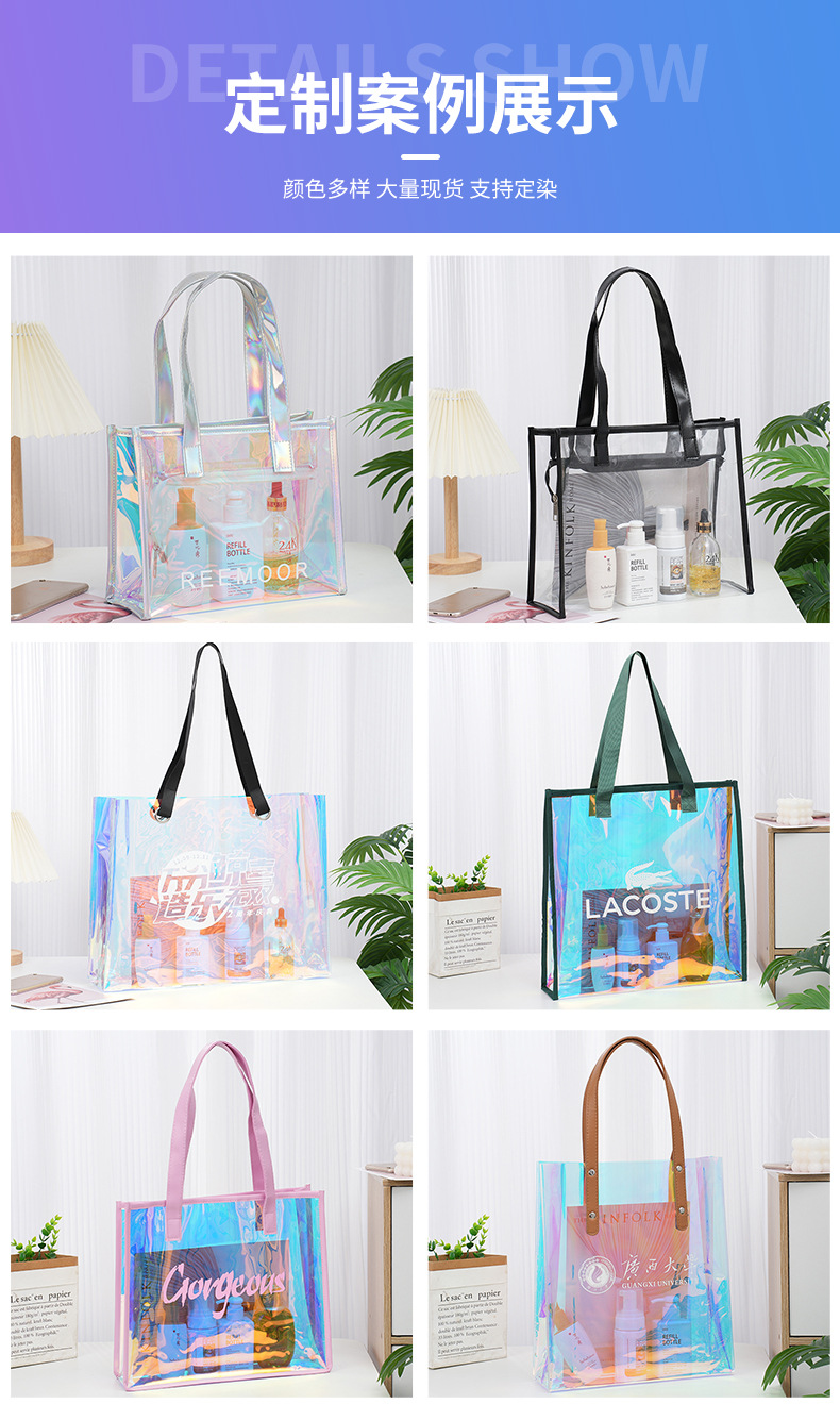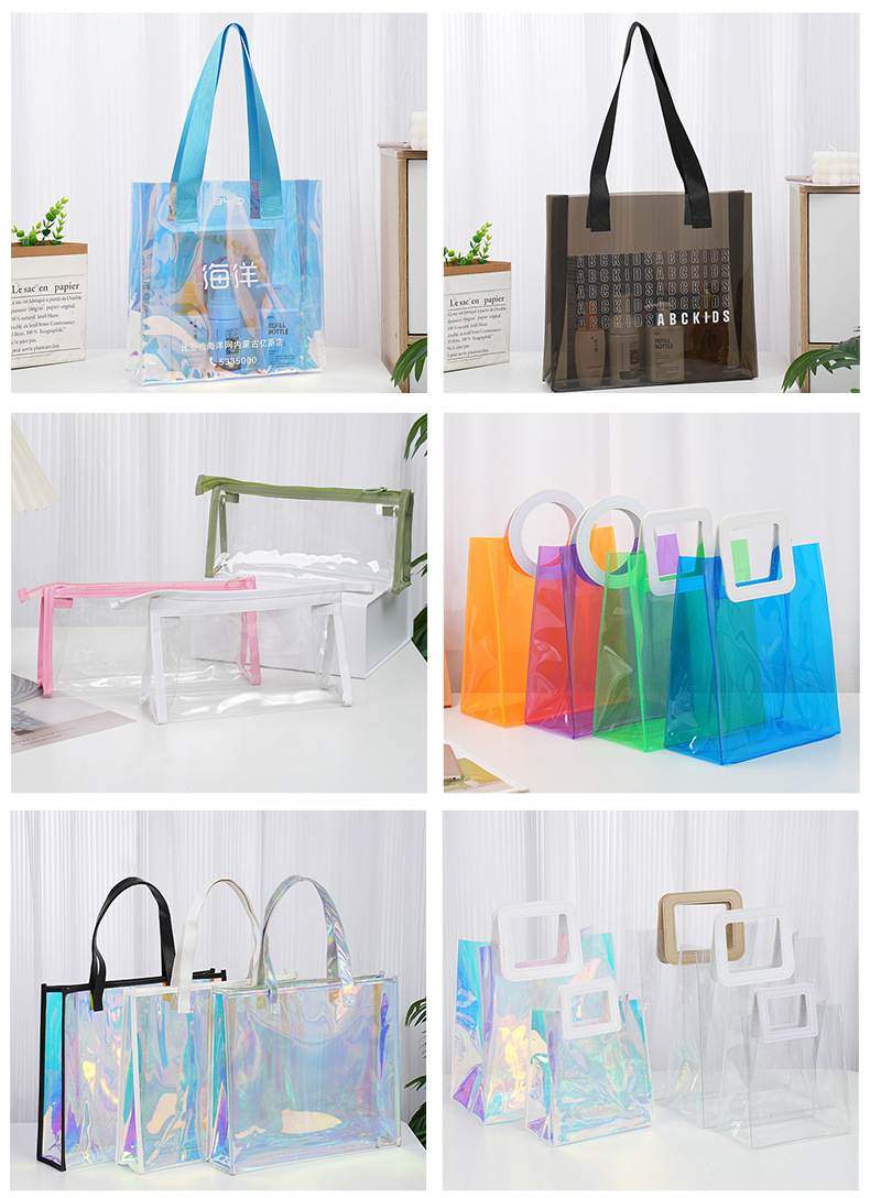 pvc colorful laser handbag customized tpu transparent plastic bag fashion shopping gift bag makeup skin care bag