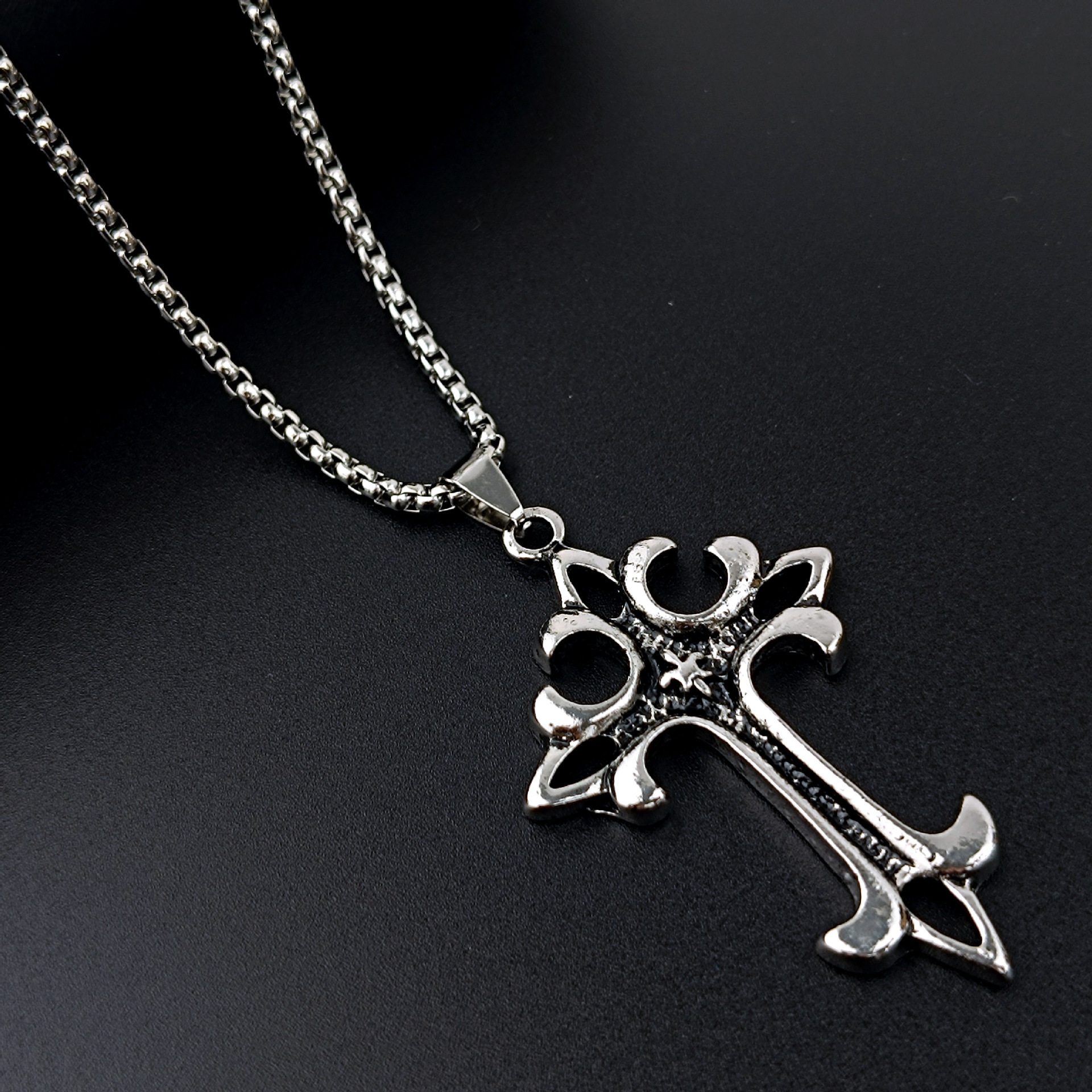 hot sale at aliexpress european and american retro multi-layer cross necklace men's stainless steel cross pendant clavicle chain