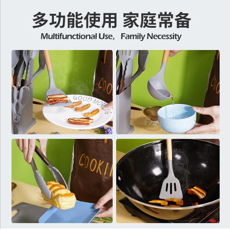 19-piece silicone kitchenware tool set (square double barrel)