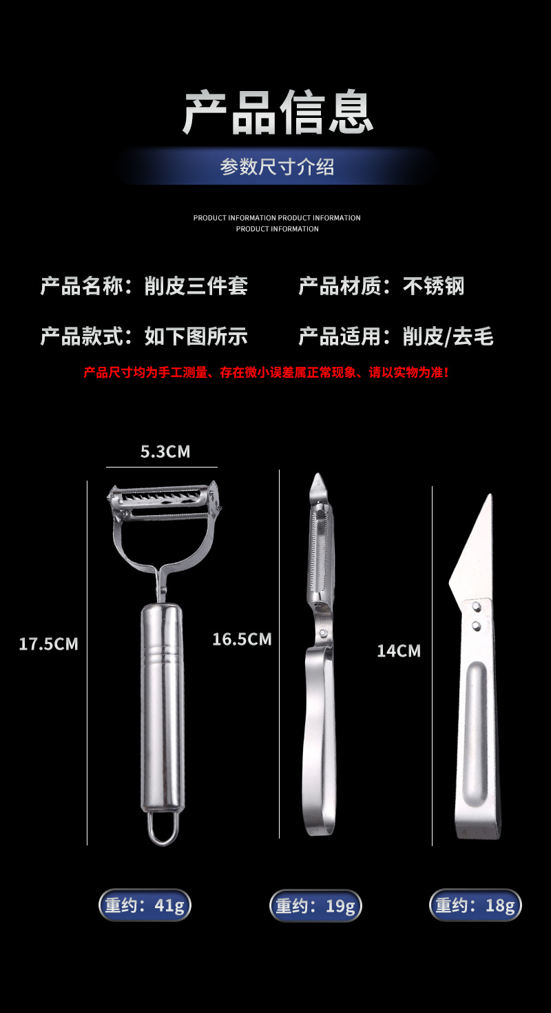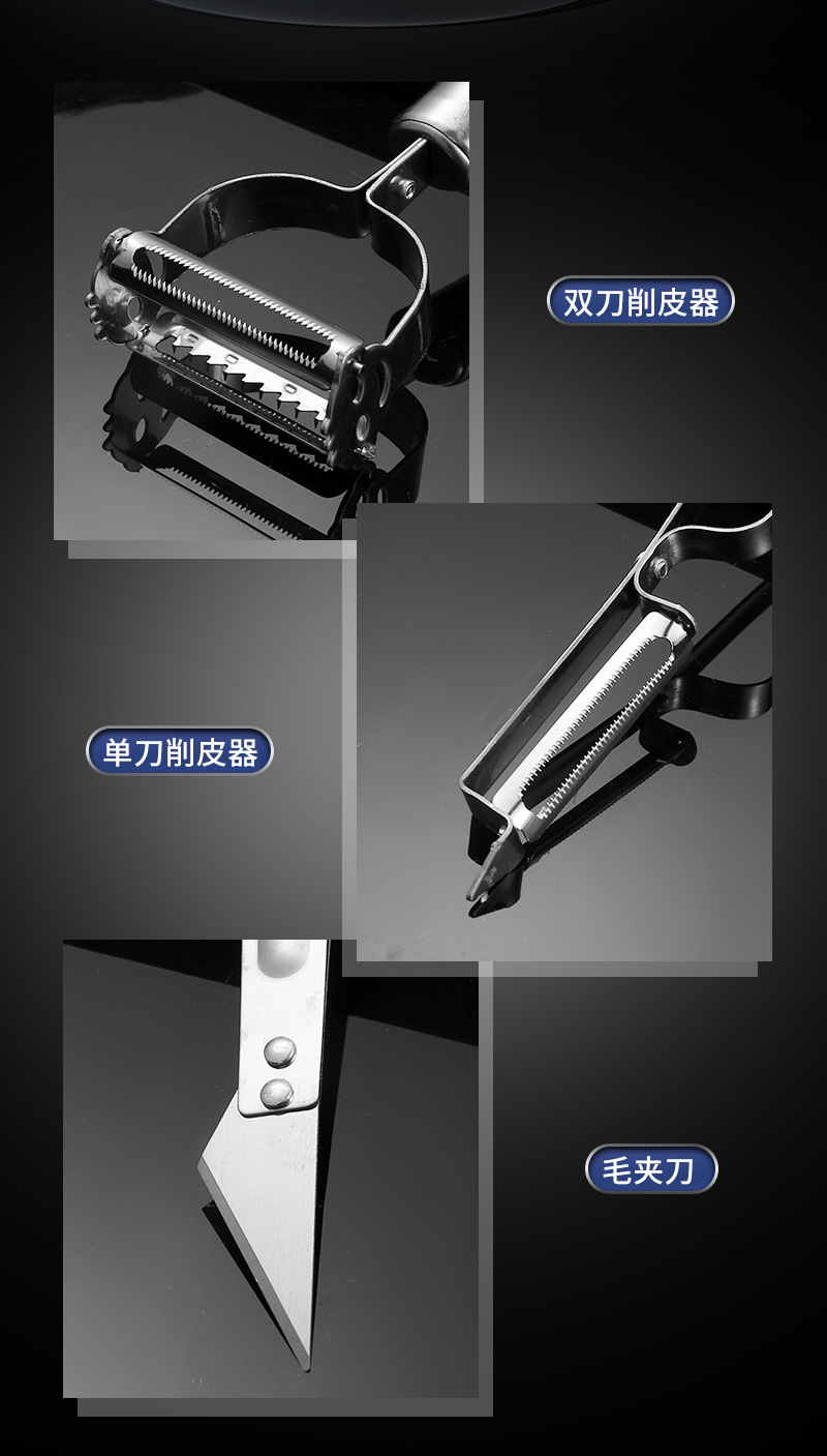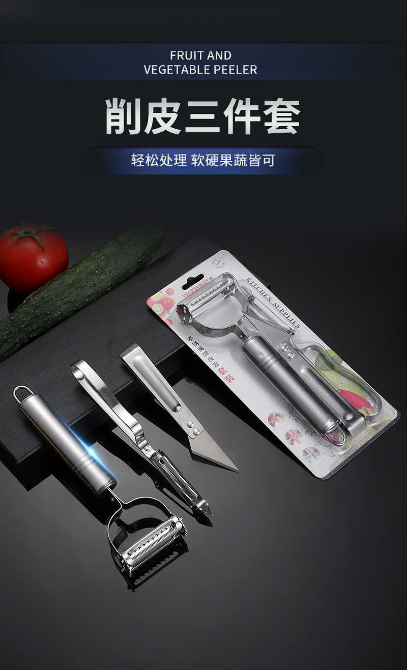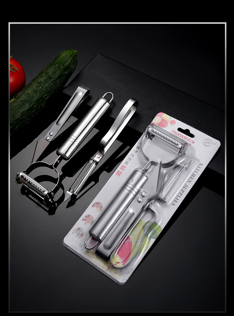 Potato Peeler Multi-Functional Three-in-One Pig Hair Tweezer Peeler Three-Piece Stainless Steel Multi-Purpose Gadget