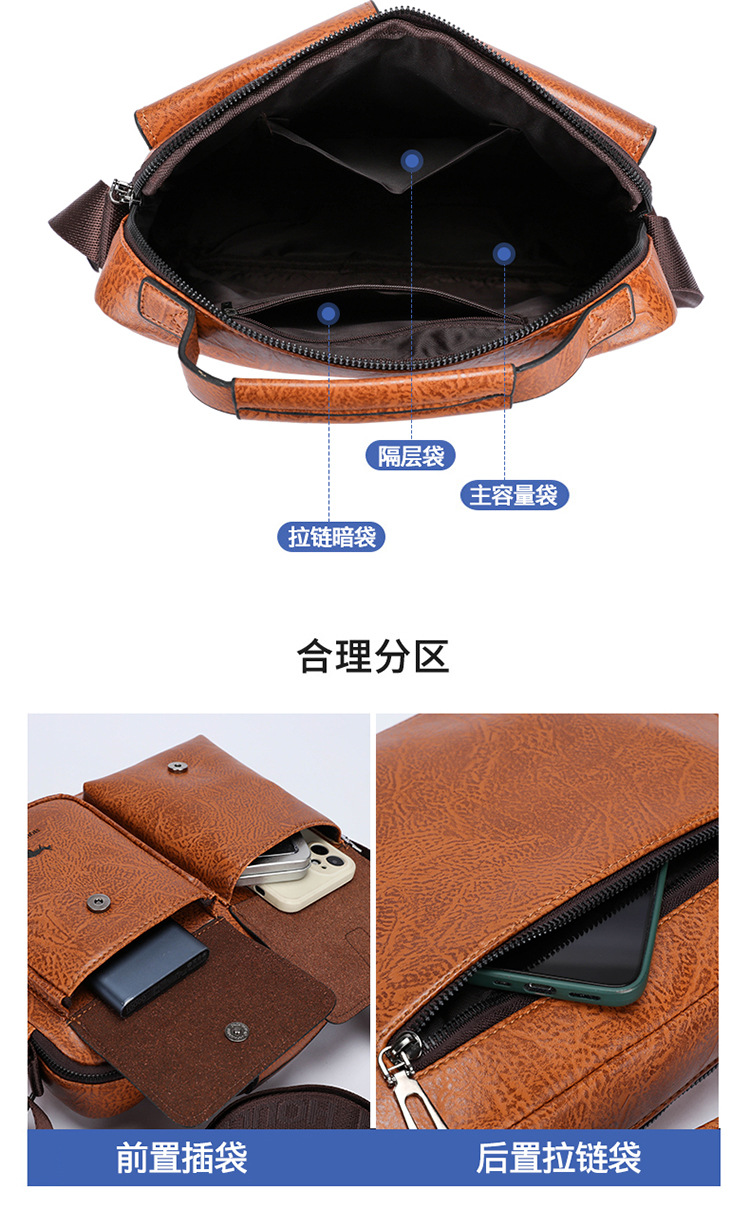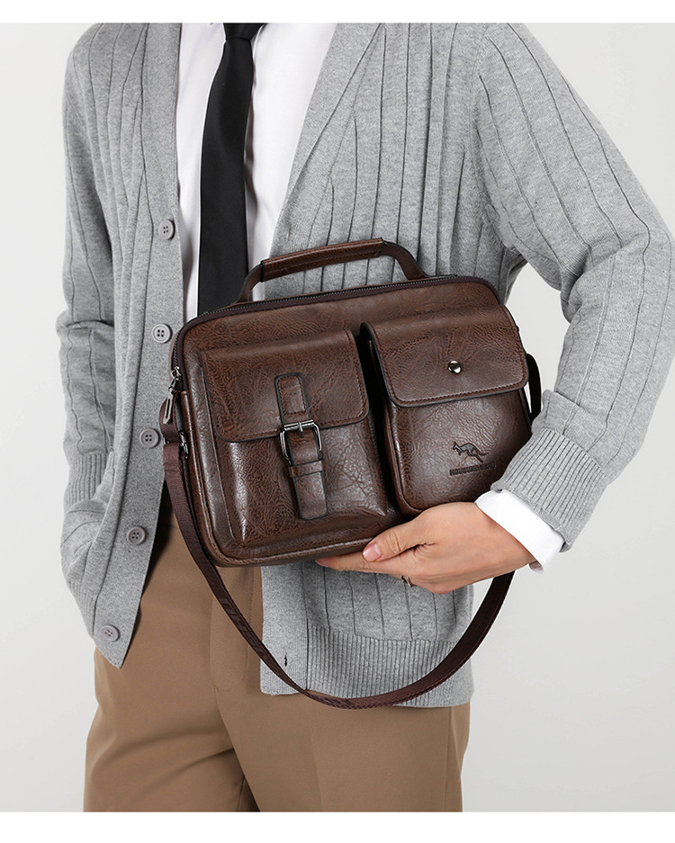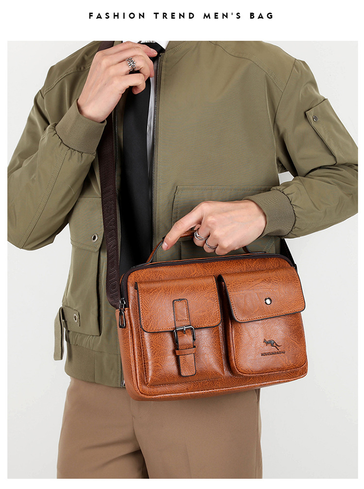 new horizontal men's handbag shoulder bag textured business casual messenger bag men's backpack briefcase