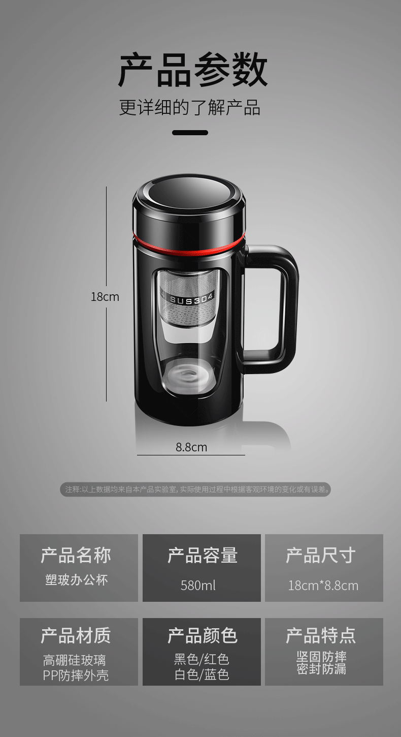 580ml red (tea water separation tea compartment): ml