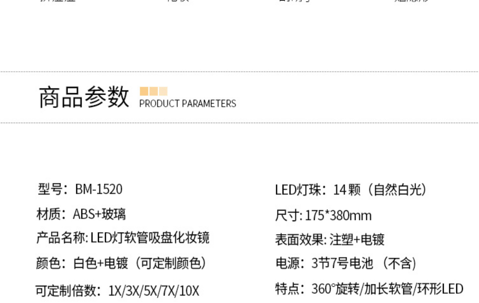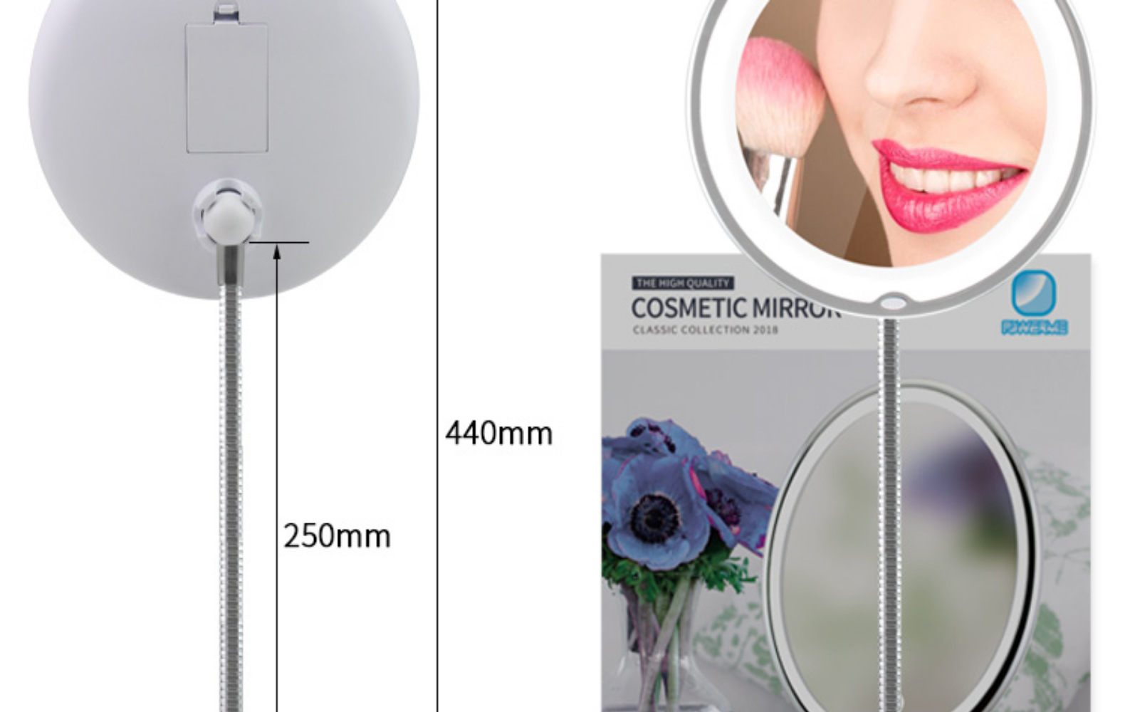10x Enlarged Led Bathroom Suction Cup Cosmetic Mirror Metal Hose 360 Degree Rotating Suction Cup Battery Powered