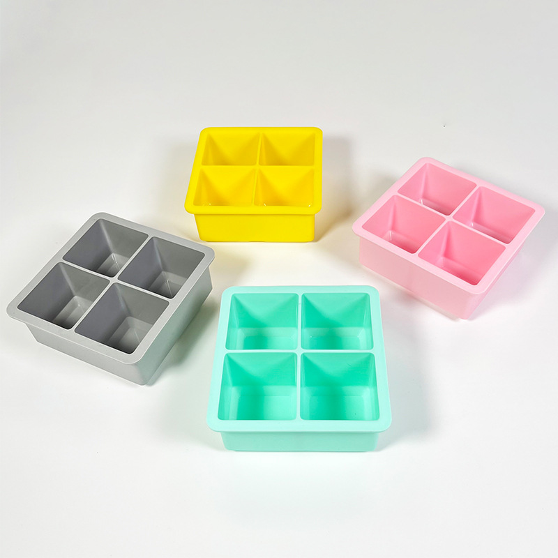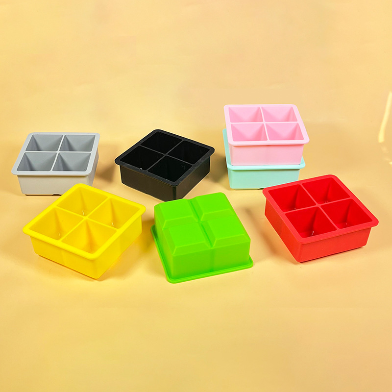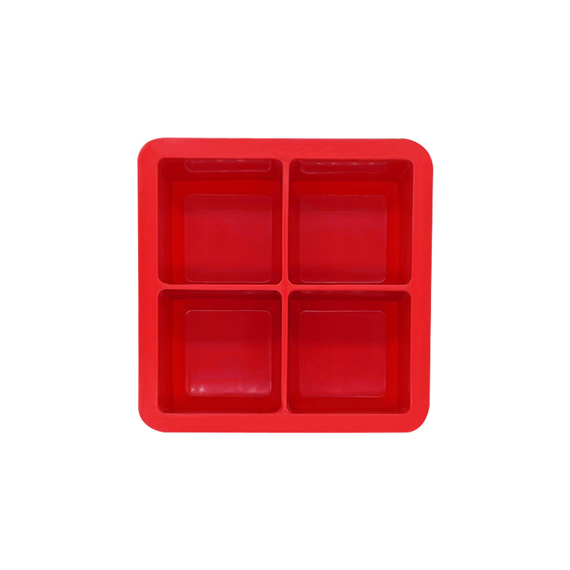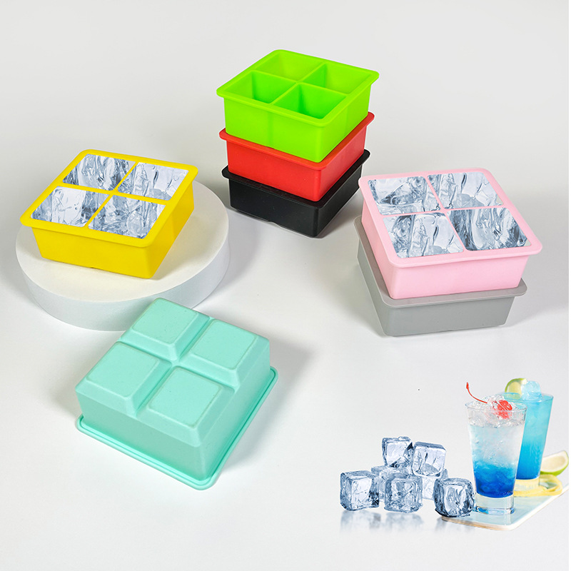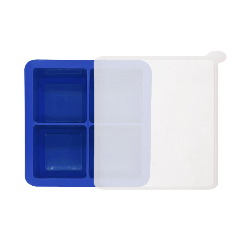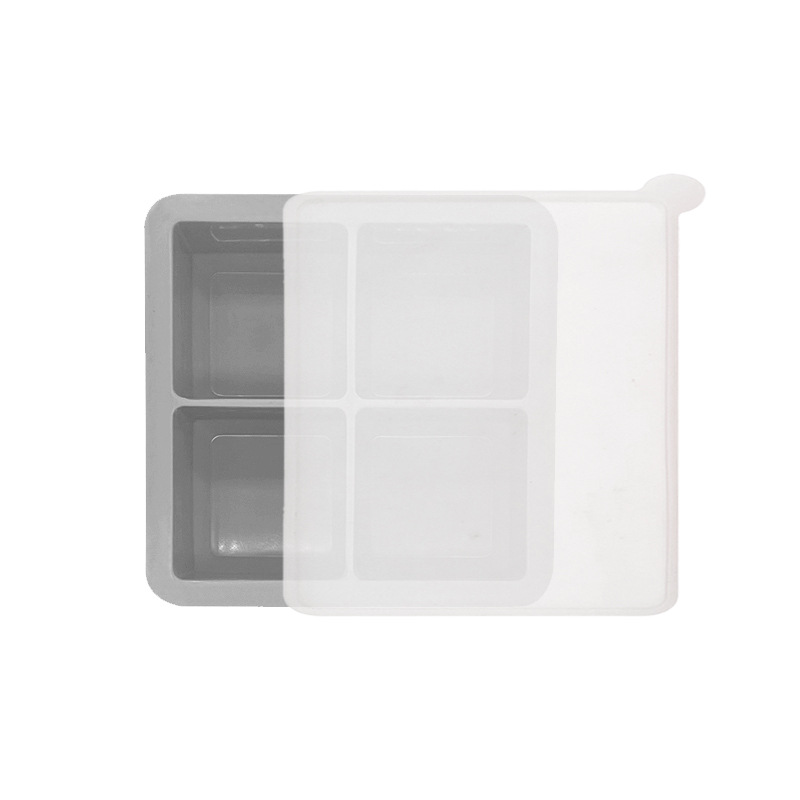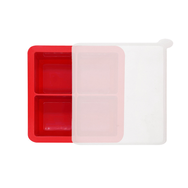 hot 4-hole silicone ice tray frozen water mold 4-grid square household refrigerator ice cube box with lid 0825