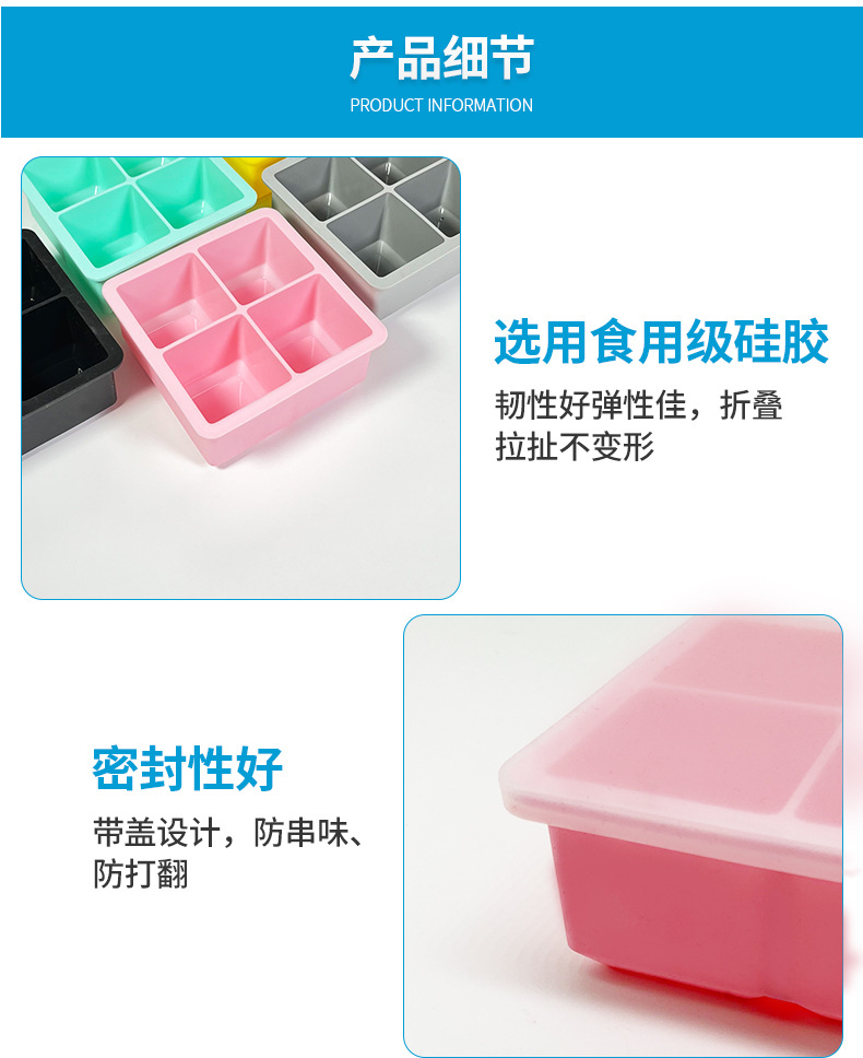 • Item No. 0825-硅胶冰格4格方形带盖