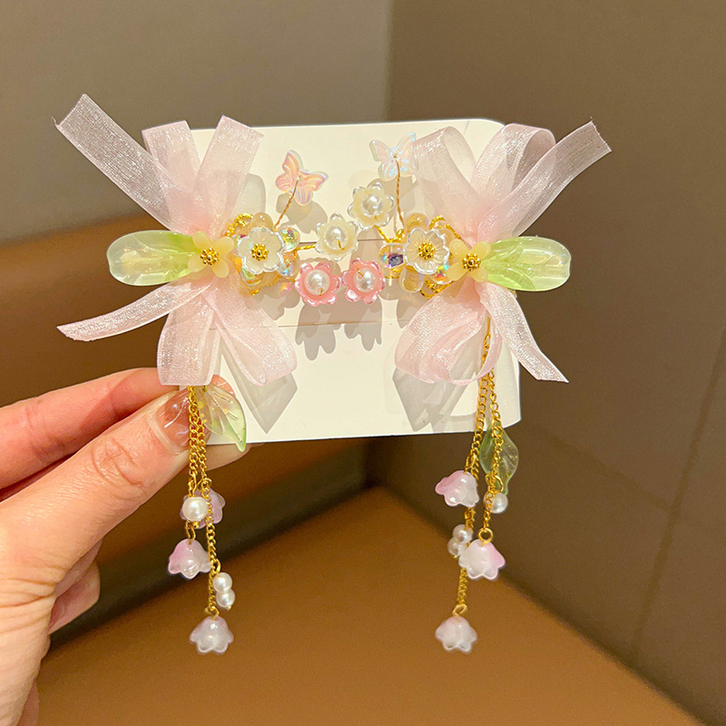 gf1003a pink butterfly pendant a pair of hairclips