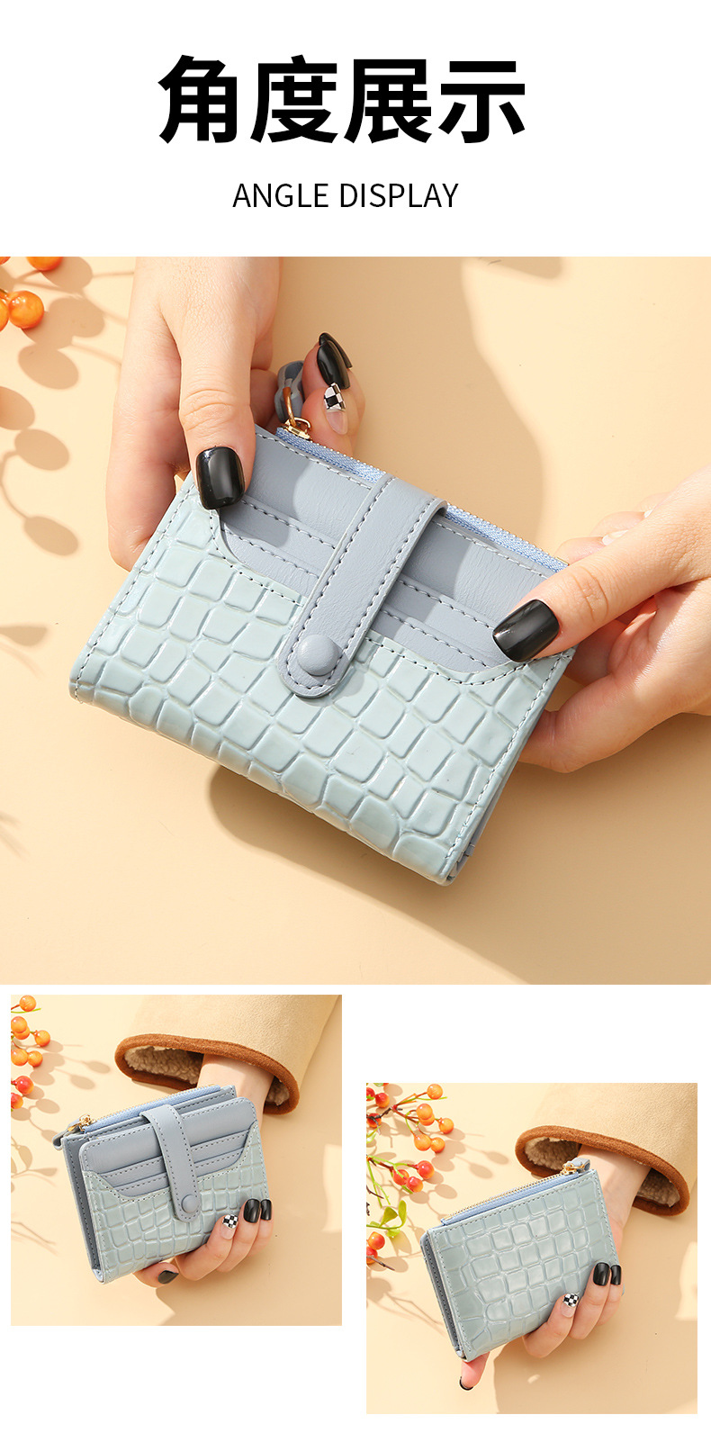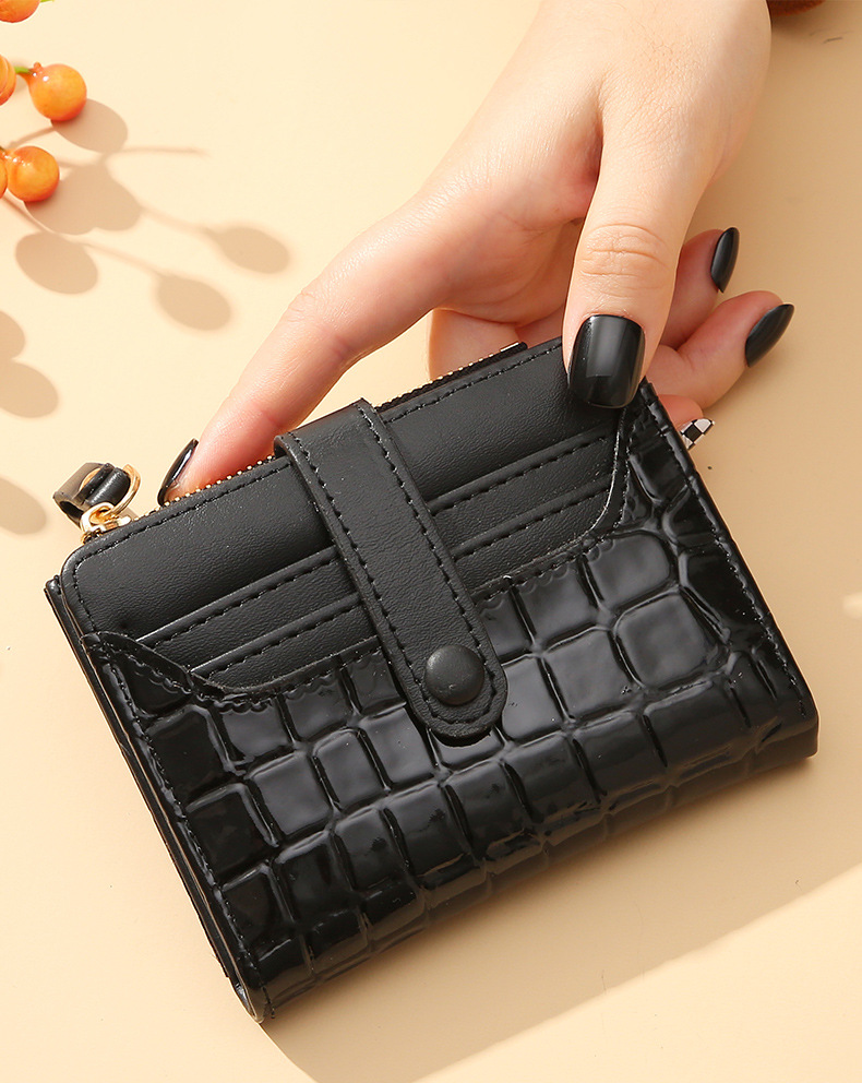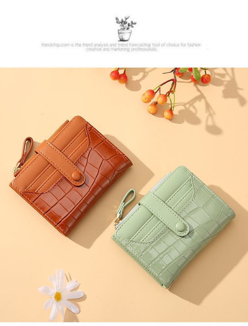 2023 New Women's Korean-Style Retro Crocodile Wallet Short and Simple Temperament Multi-Card-Slot Card Holder Change Briefcase