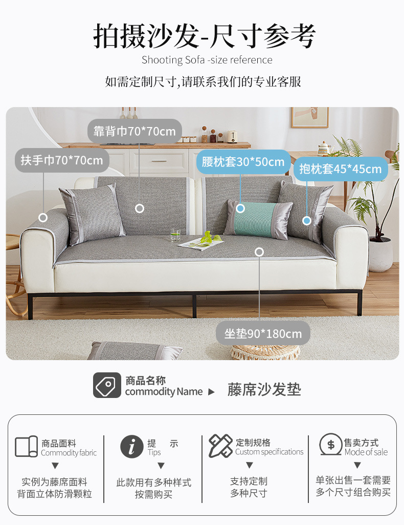 Sofa Cushion Summer Non-Slip Ice Silk Rattan Mat Cushion Simple Modern Summer Summer Mat Sofa Cover Backrest Towel