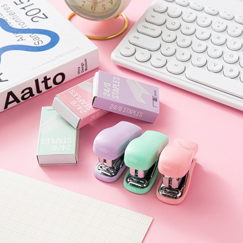 Macaron Color Mini Stapler Kit Small 12 Th Stapler Stitching Needle Combination Office Portable Bookbinding Machine