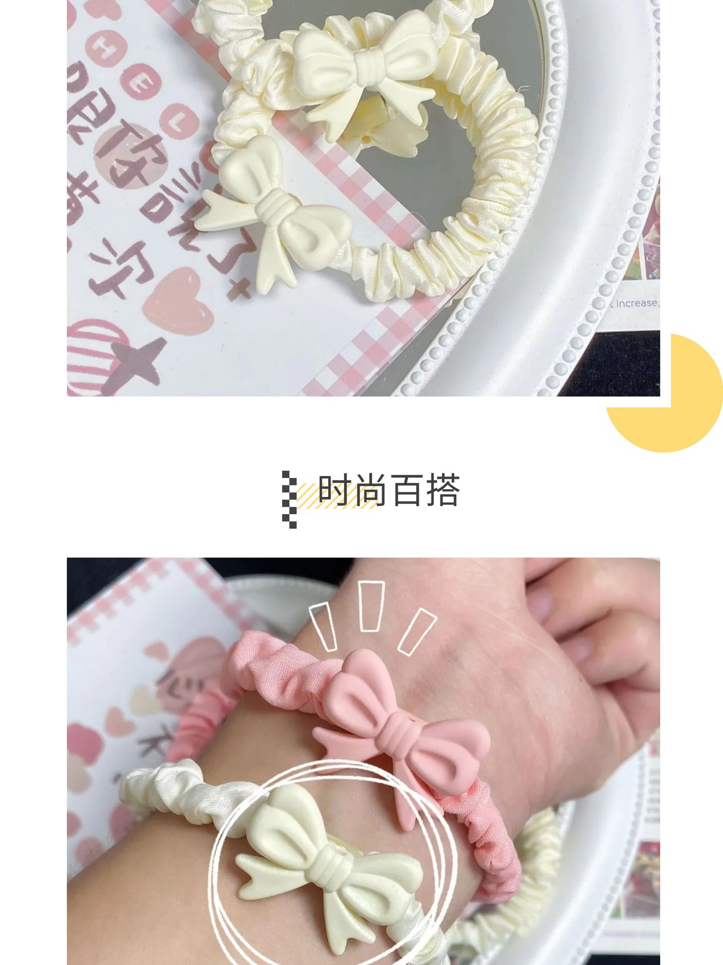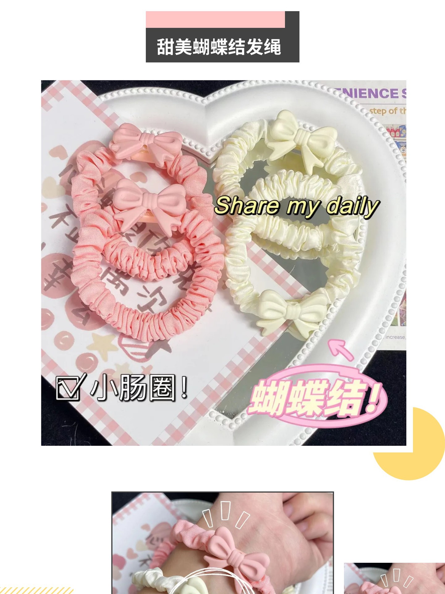 new spring cartoon sweet cream bowknot hair ring japanese cute fold small intestine ring hair rope rubber band headdress