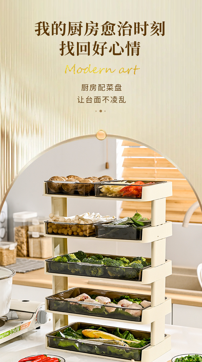 New Kitchen Dish Multi-Layer Storage Tray Hot Pot Side Dishes Rack Movable Classification Desktop Tray Storage Tray