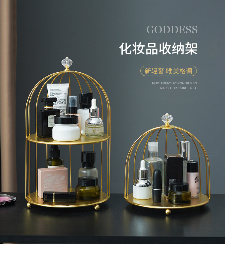 creative dresser skin care products perfume lipstick organizing rack cosmetics storage rack iron birdcage desktop storage rack