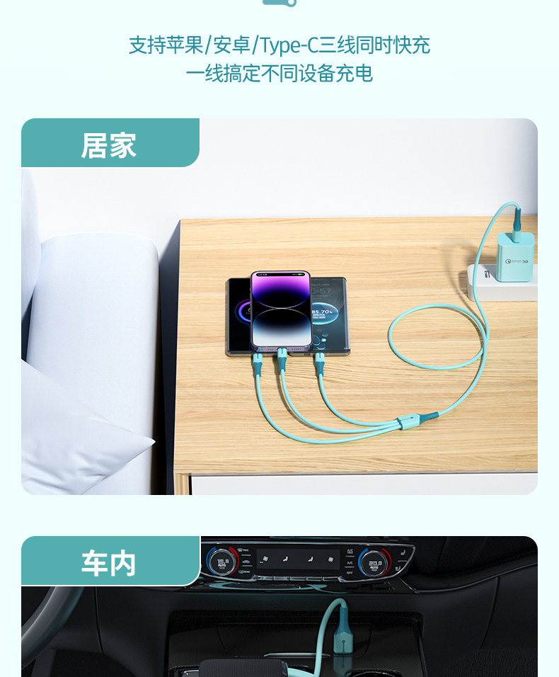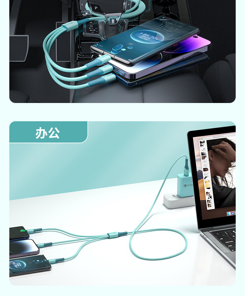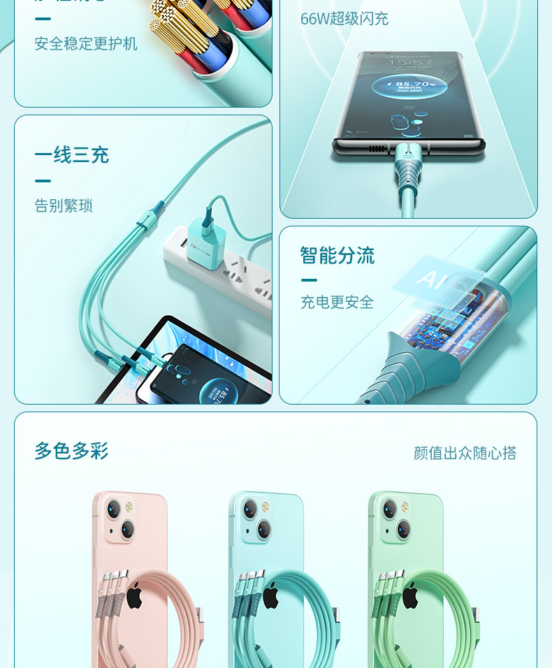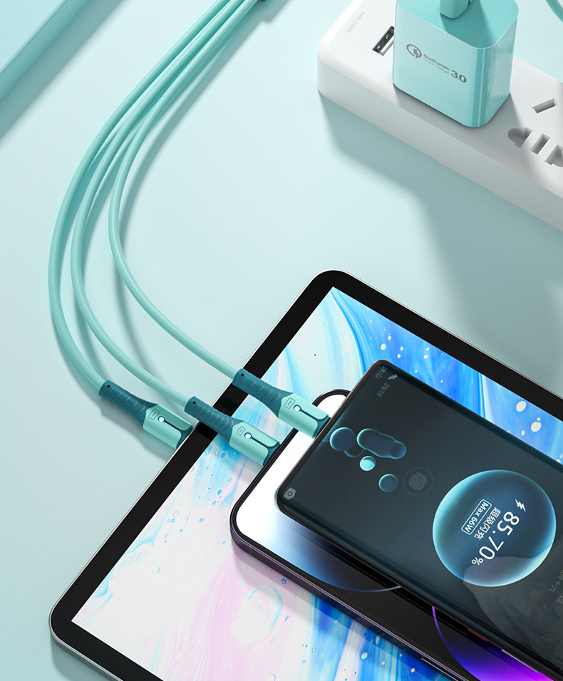 Three-in-One Fast Charge Data Cable for Apple Android Flash Charging Mobile Phone Huawei One for Three Charging Cable Vivo