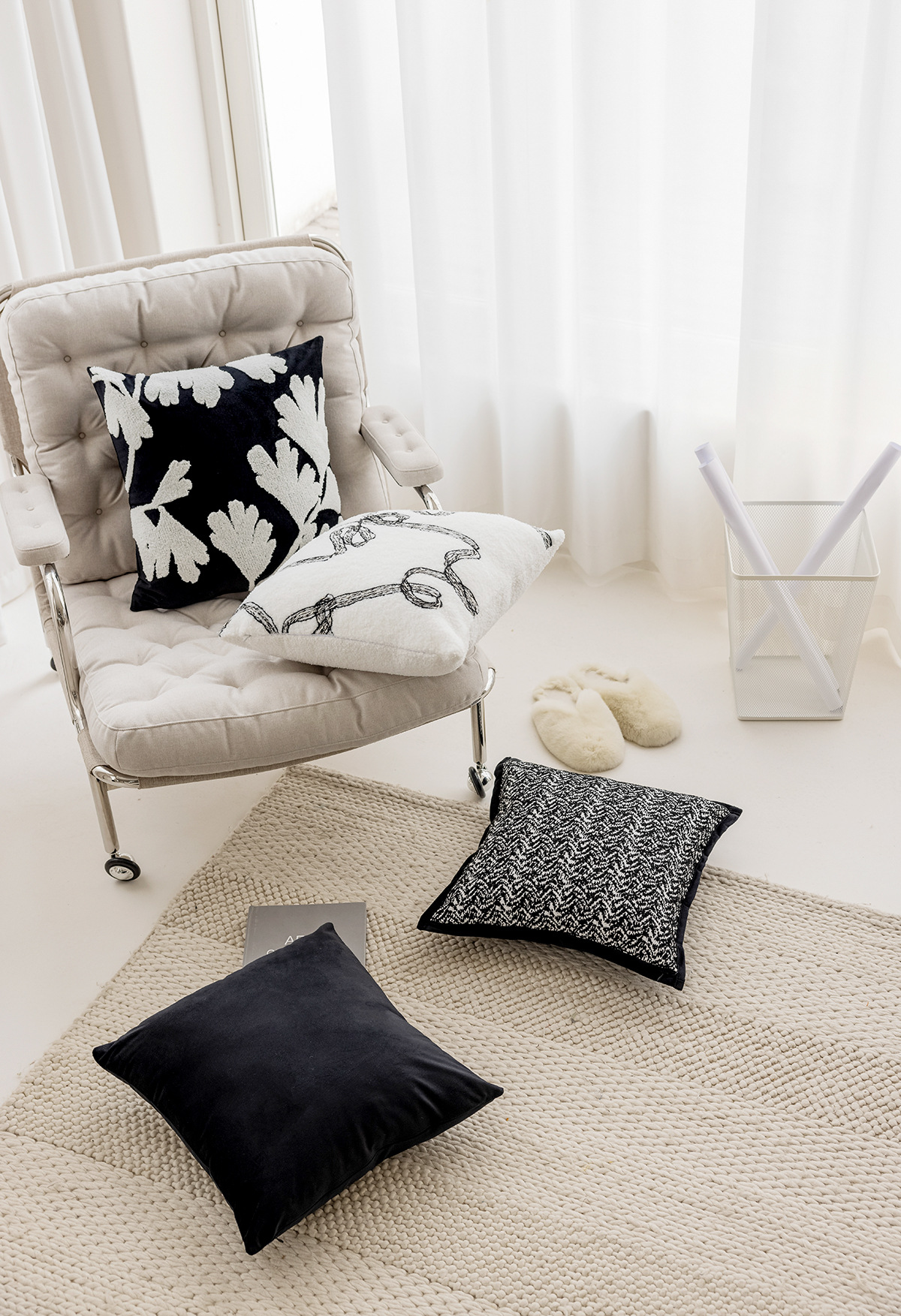 Black Embroidery Pillow Cover Wholesale Ins Style Nordic Living Room Sofa Nap Bed Pillow High Sense Back Cushion