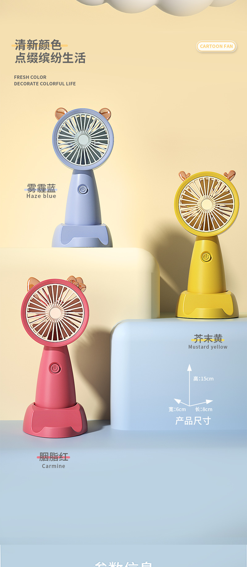 cat ear battery little fan [battery not included]: 6*8*16