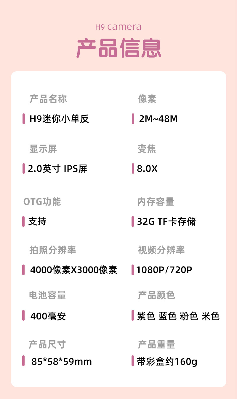 New Cross-Border H9 Mini SLR Children's Digital Camera HD Dual-Camera Camera Children's Camera