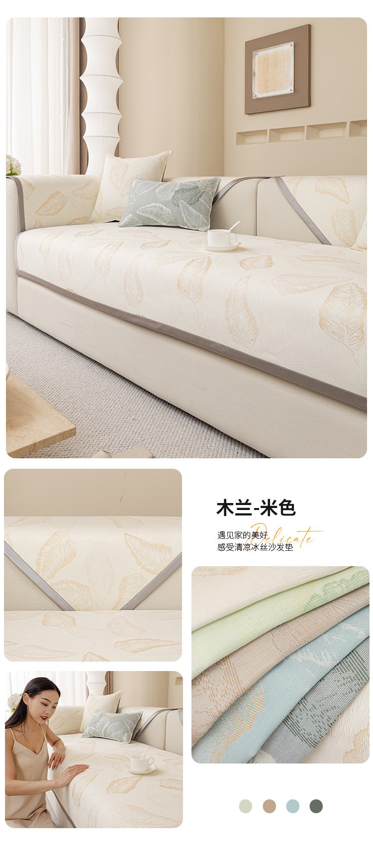Ice Silk Sofa Cushion Summer Summer Mat Cushion 2023 Summer New Non-Slip Washable Sofa Cover Towel Wholesale