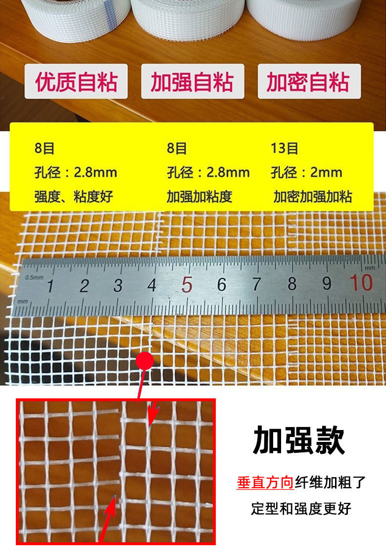 Mesh Self-Adhesive Net Cloth with Seam Patch Decoration Joint Band Crack-Resistant Alkali-Resistant Insulation Mesh Glass Fiber Belt Cross-Border