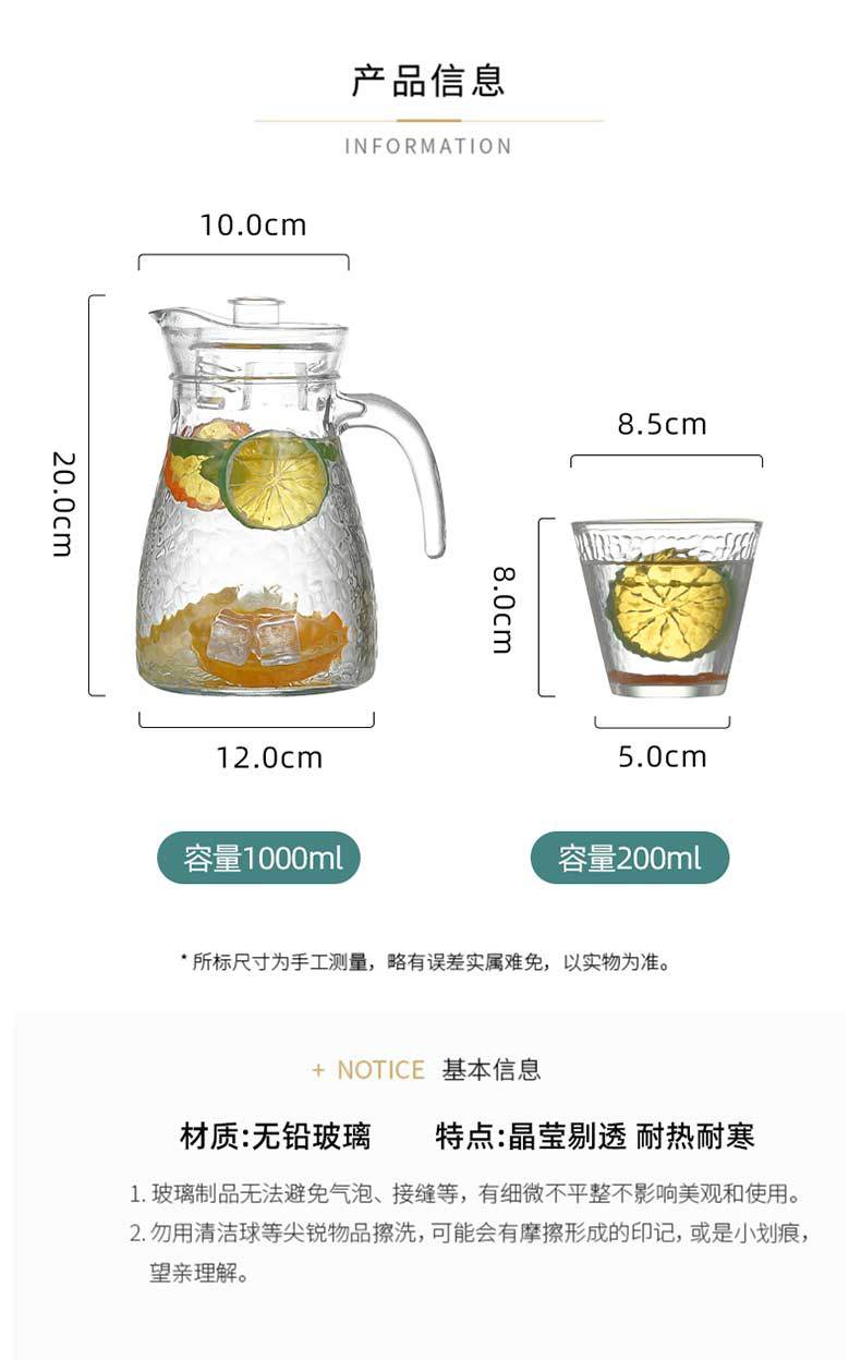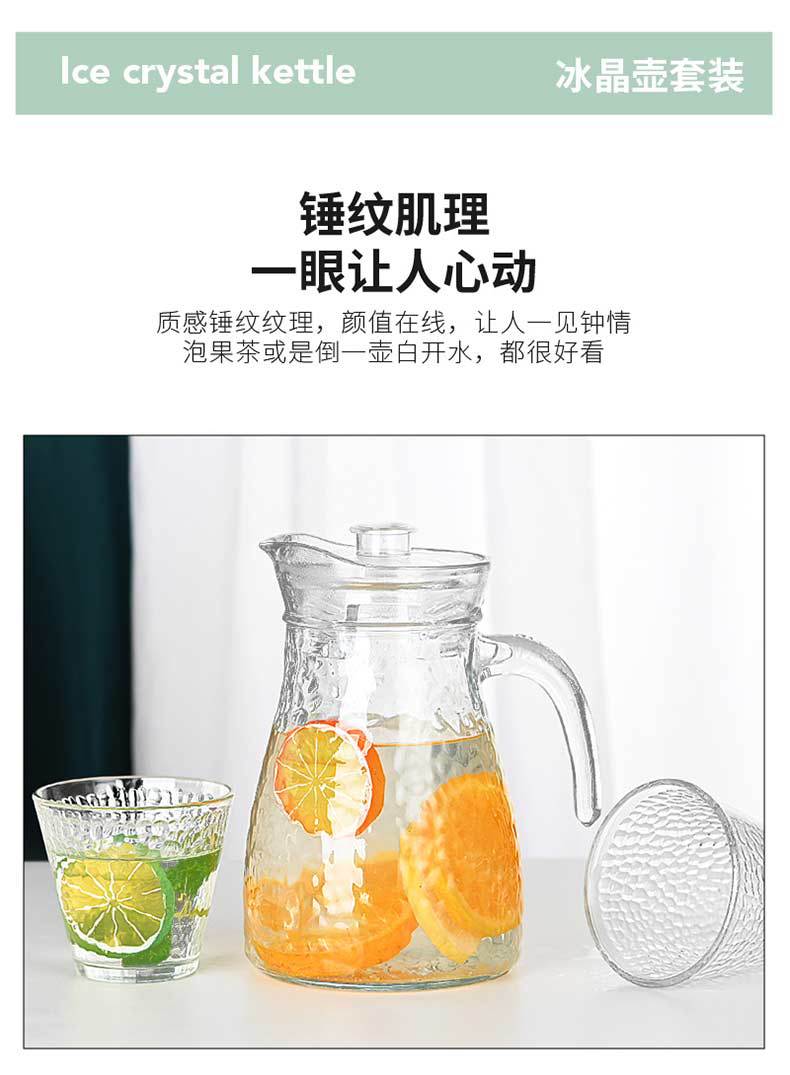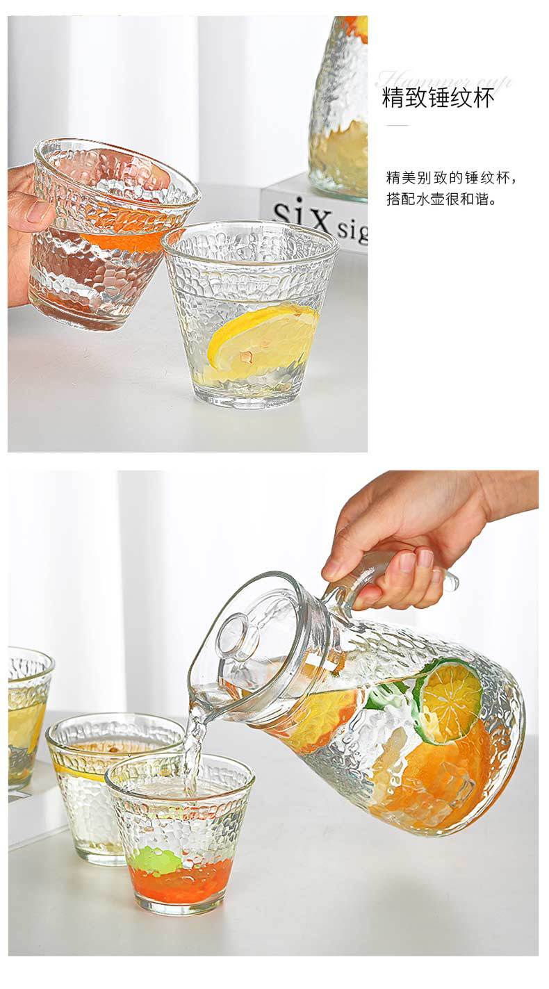 household refrigerator cold water bottle large capacity hammered glass water cup set teacup can be customized