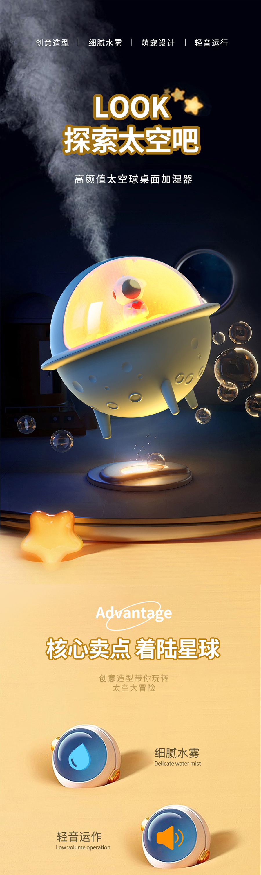 New Astronaut Humidifier Creative Household Desk Moisturizing Spray Heavy Fog Mute Humidifier Cross-Border
