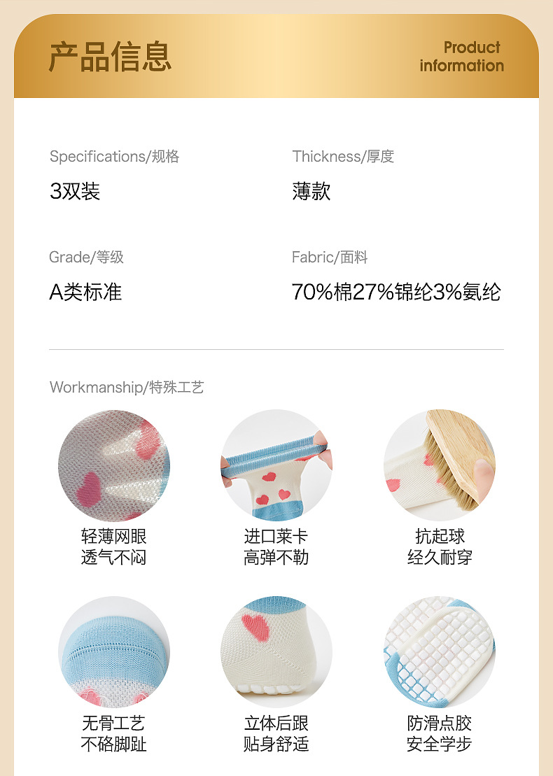 Baby & Toddler Non-skid Short Socks, 2023 Summer, 3 Pack/Box - With Silicone Grips