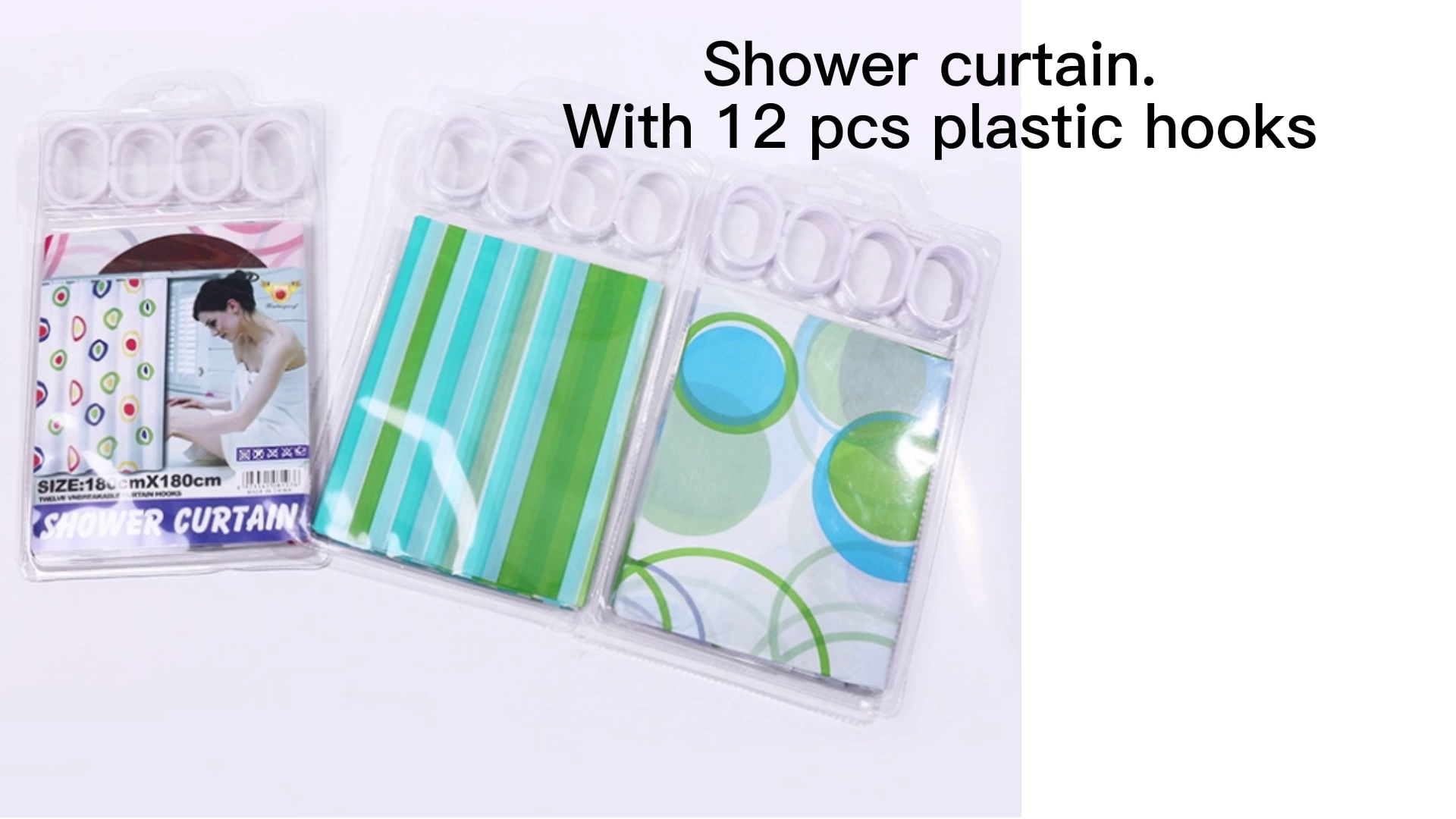 Product packaging: liner board + C hook + ordinary PP bag + 12PC shower curtain hooks for free gift