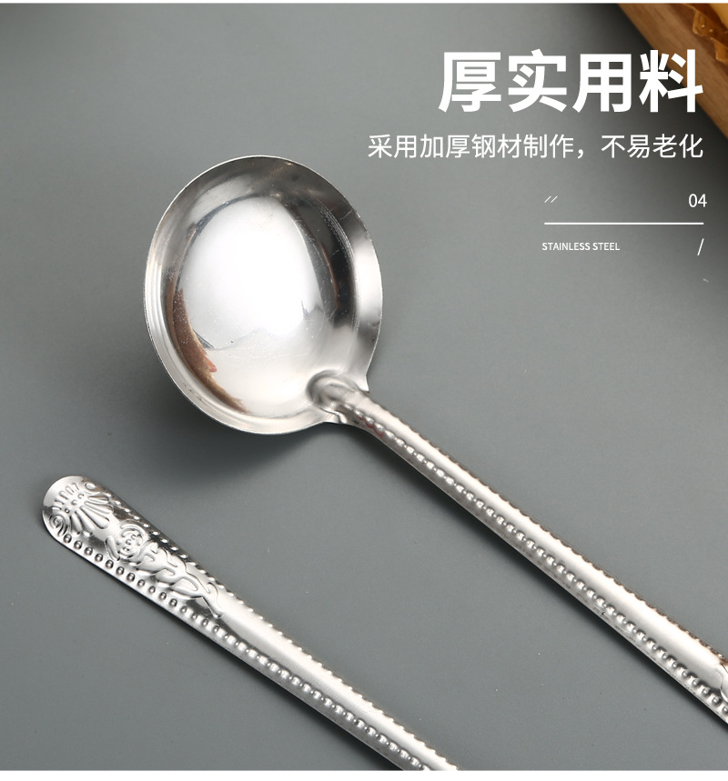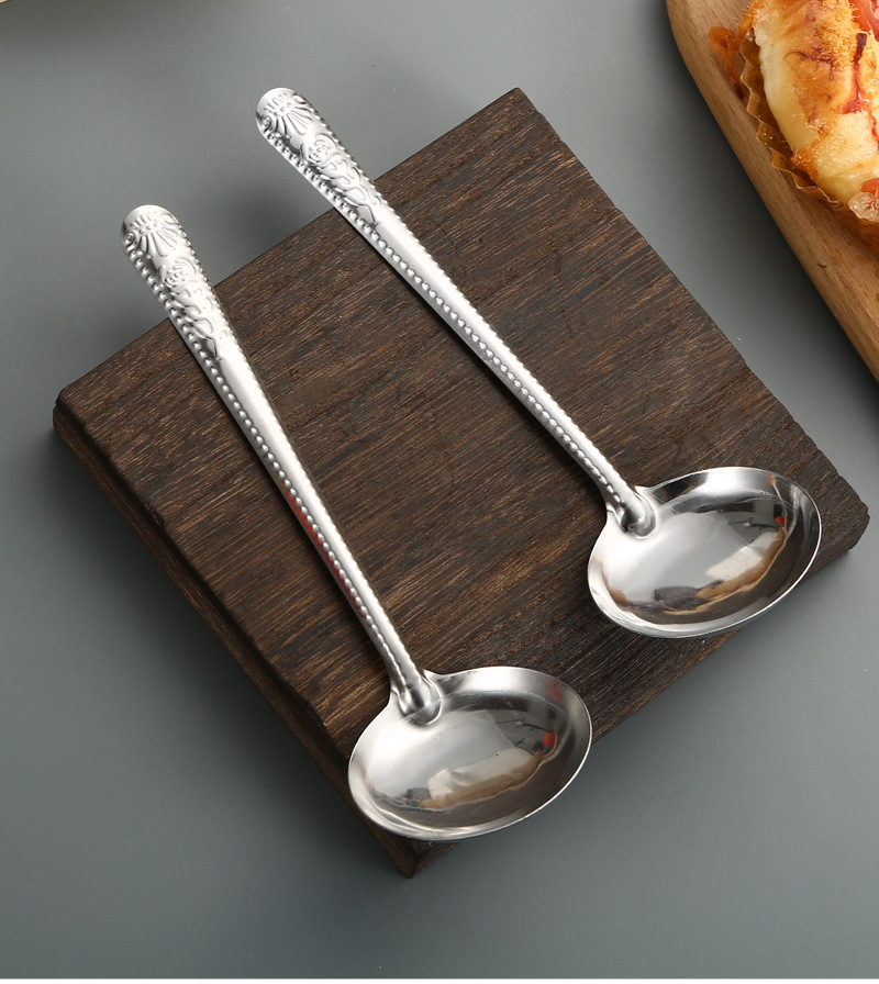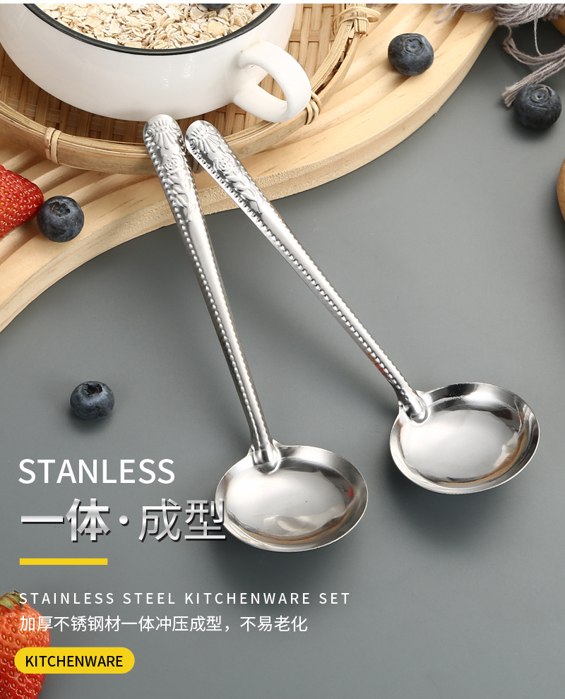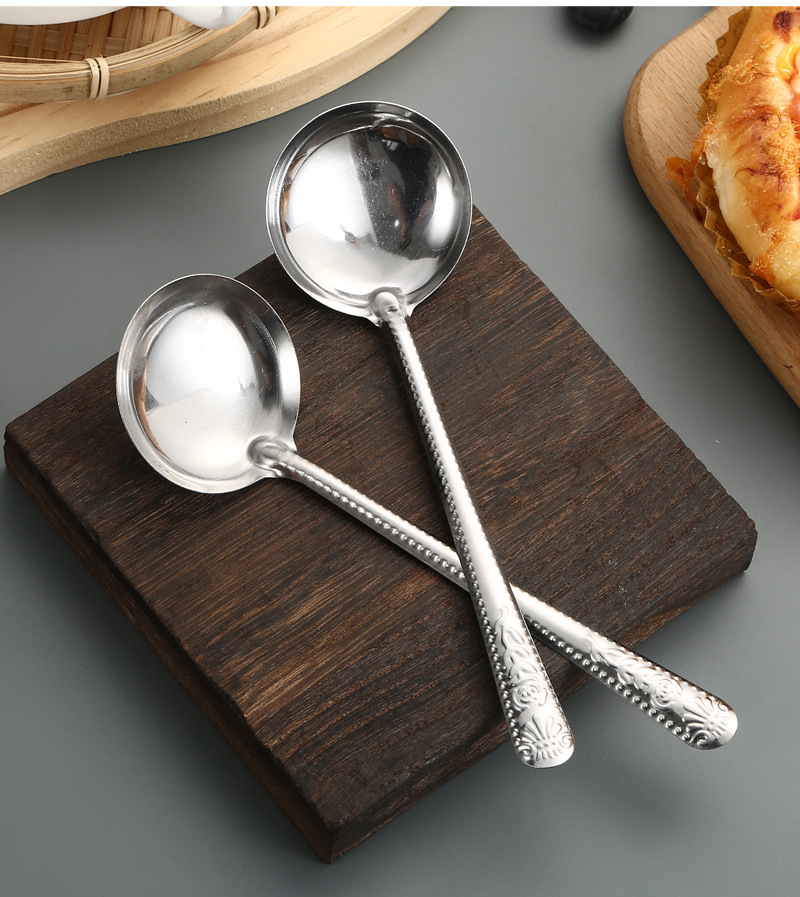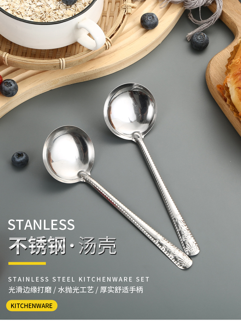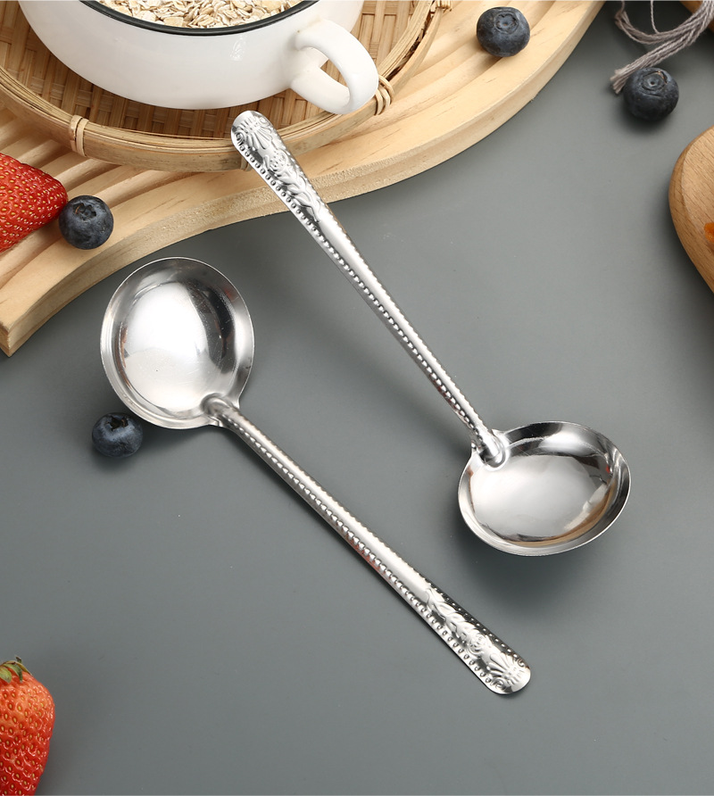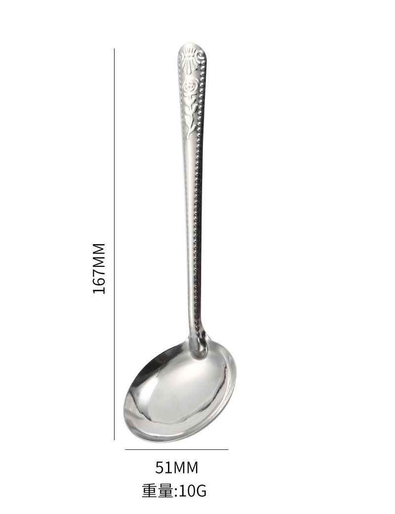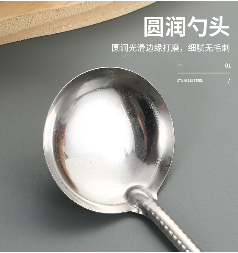 Stainless Steel Tableware Spoon Watermelon Soup Spoon Household Soup and Rice Long Handle Restaurant Canteen Thickened Soup Ladle round Spoon