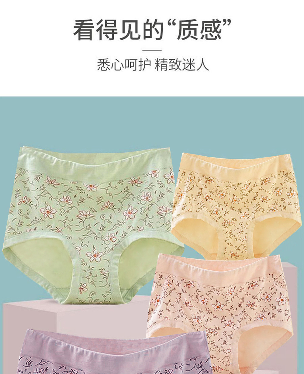 [printed 4 pack] skin green purple with cameo brown pure cotton 108 plus size 60.00 kg-70.00 kg